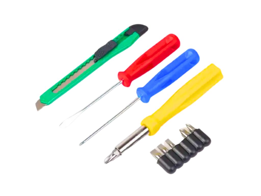 Set de scule cu 10 piese - biți, șurubelniță cu suport și cuțit detașabil