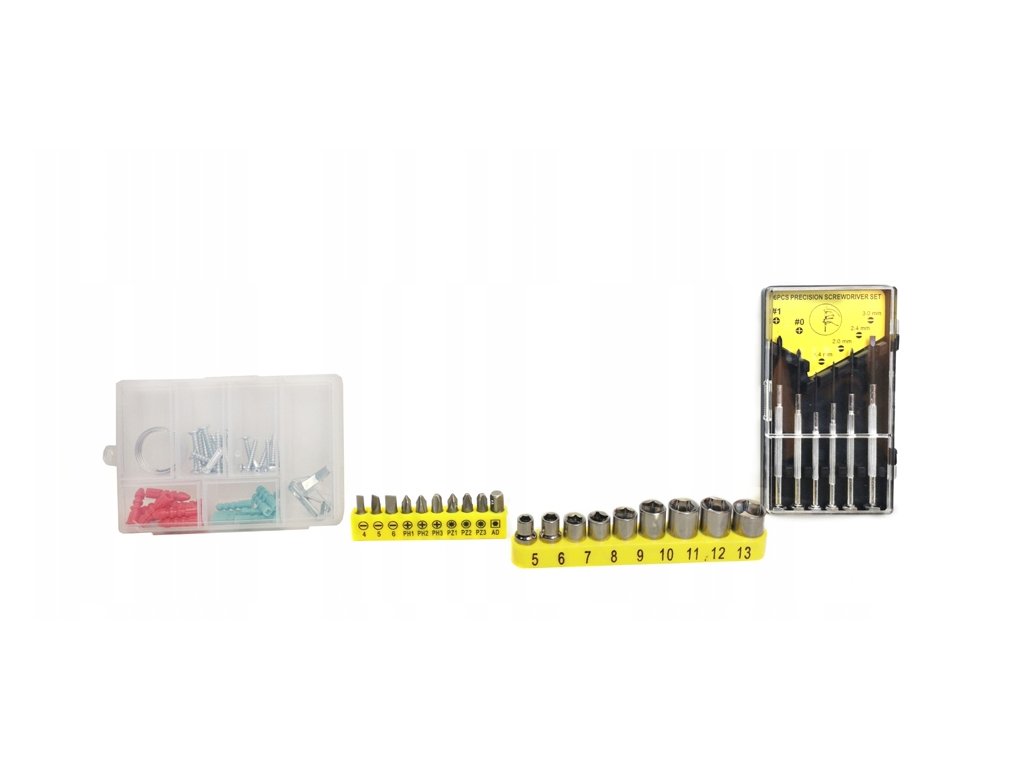 - șurubelnițe de precizie: PH 0–1, SL 1,4–2,0–2,4–3,0 mm