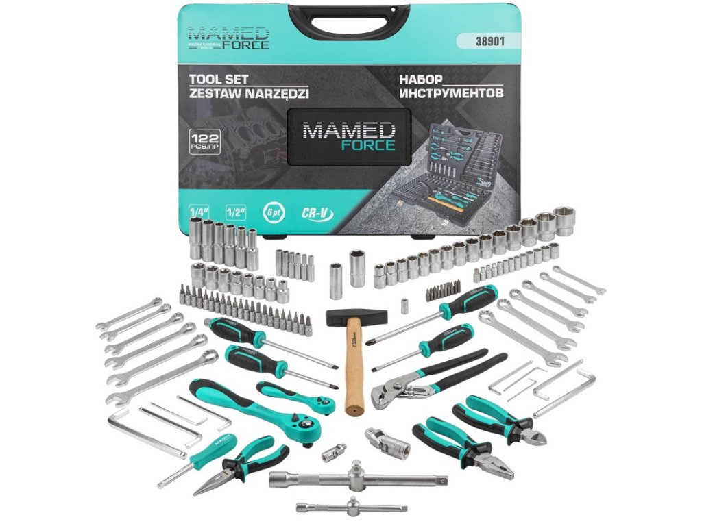 Set de scule cu 122 de piese într-o cutie - clichet, chei tubulare și chei