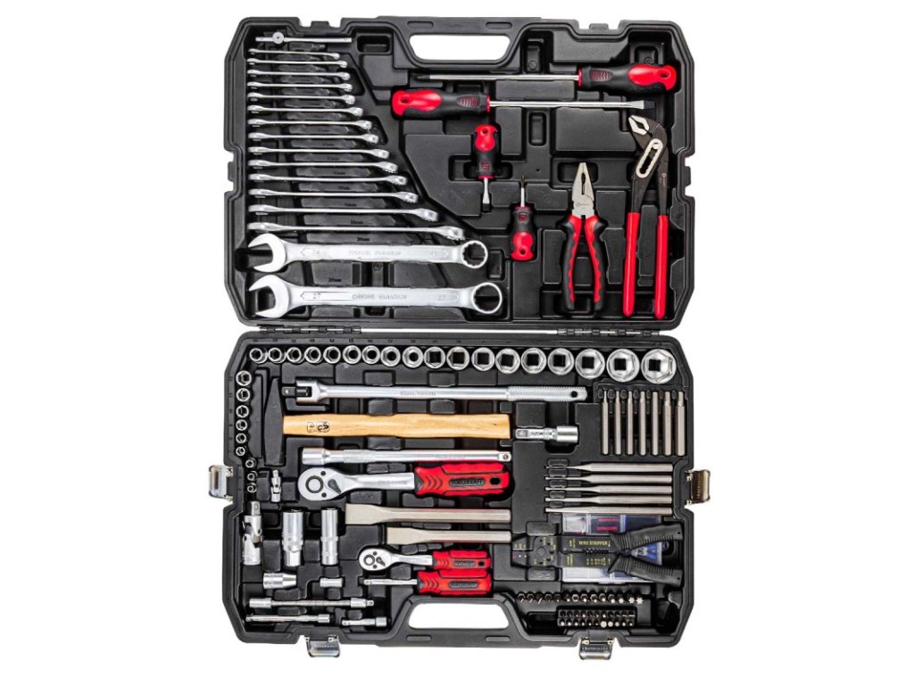 Set de scule cu 139 de piese, biți, chei tubulare de 1/4" și 1/2", clichet și chei într-o cutie
