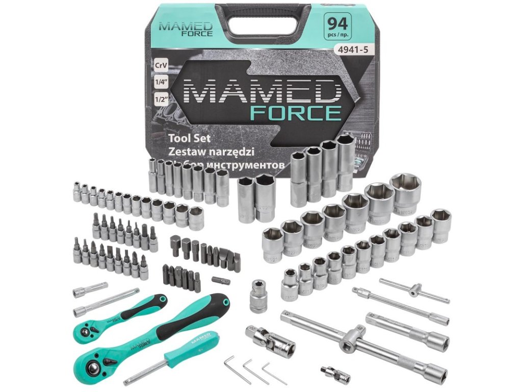 Set de scule cu 94 de piese, chei tubulare și biți într-o cutie
