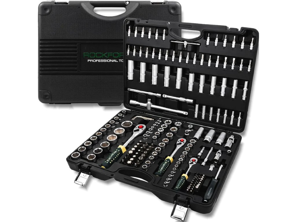 Set de scule ROCKFORCE cu 179 de piese, chei tubulare hexagonale de 1/4", 3/8", 1/2"
