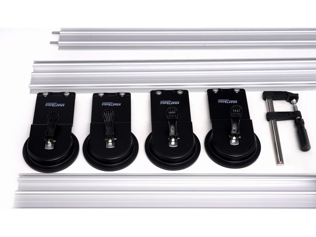 Trei șine de ghidare din aluminiu permit tăierea plăcilor cu o lungime de până la 3600 mm . Trei ventuze cu un diametru de 120 mm asigură stabilitatea tăierii, care fixează ferm șina de ghidare pe suprafața de lucru.