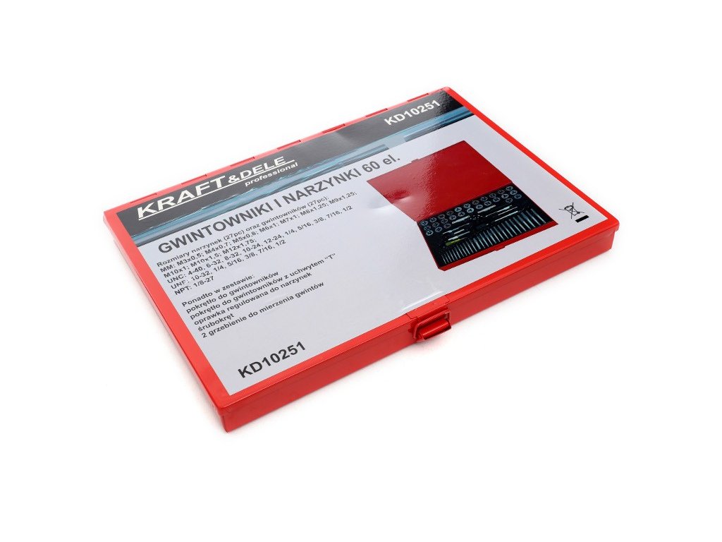Setul KD10251 conține 60 filetatoare și filiere pentru filetare marca KRAFT&DELE. Fabricat din oțel aliat de înaltă calitate, potrivit pentru orice atelier sau garaj.