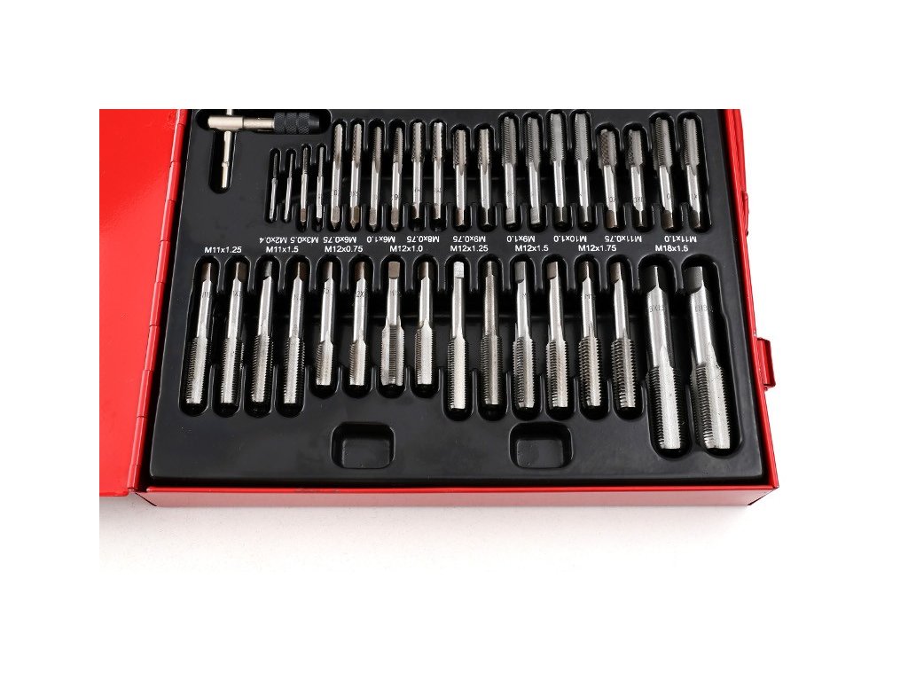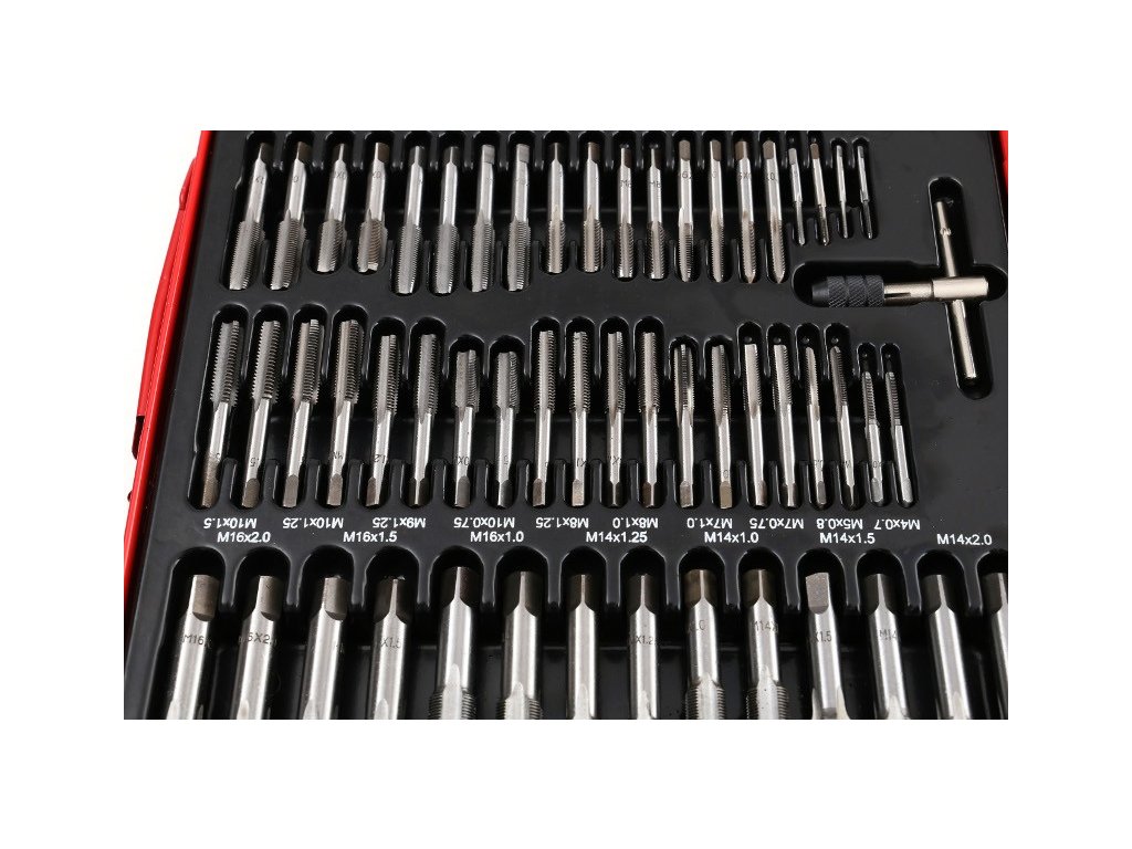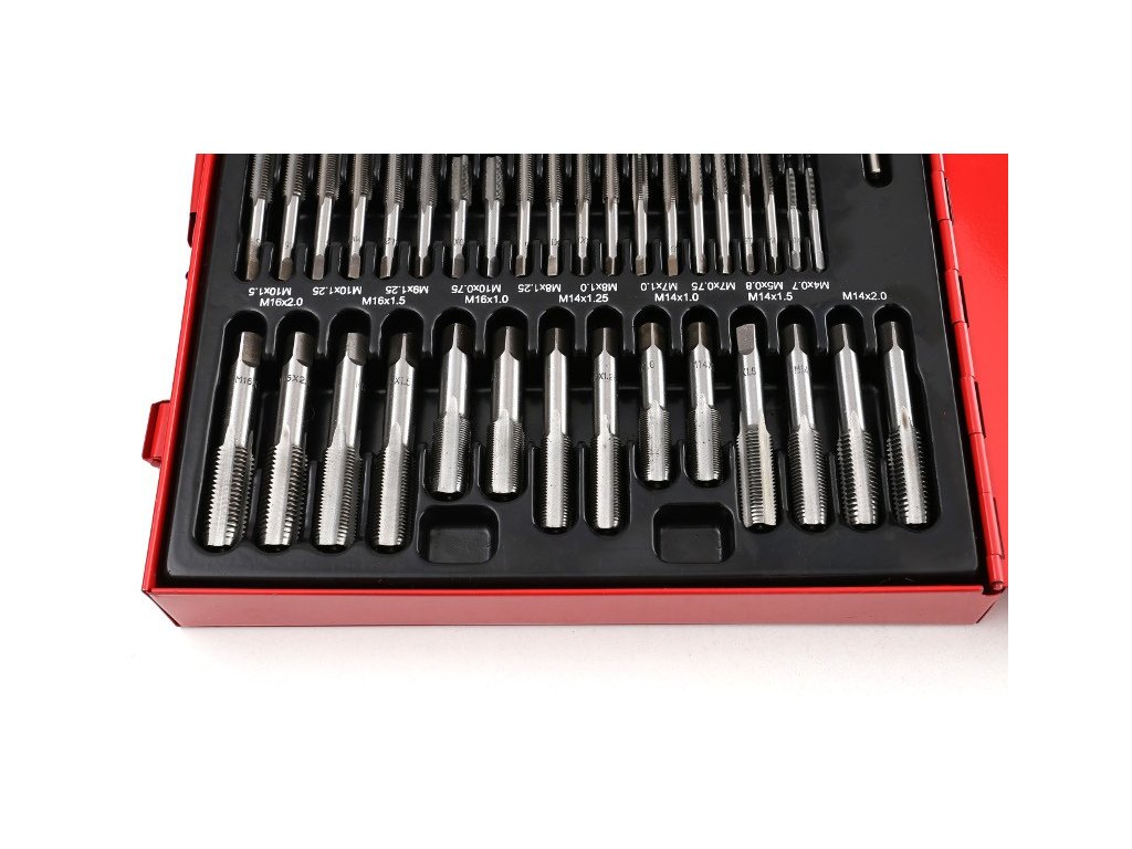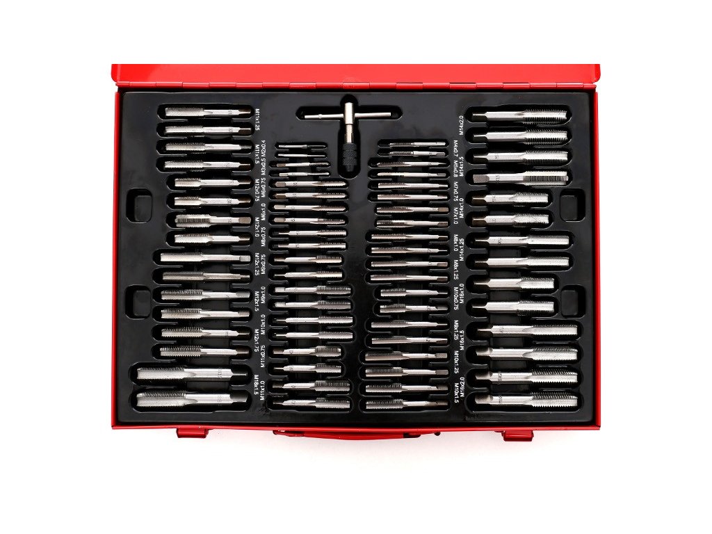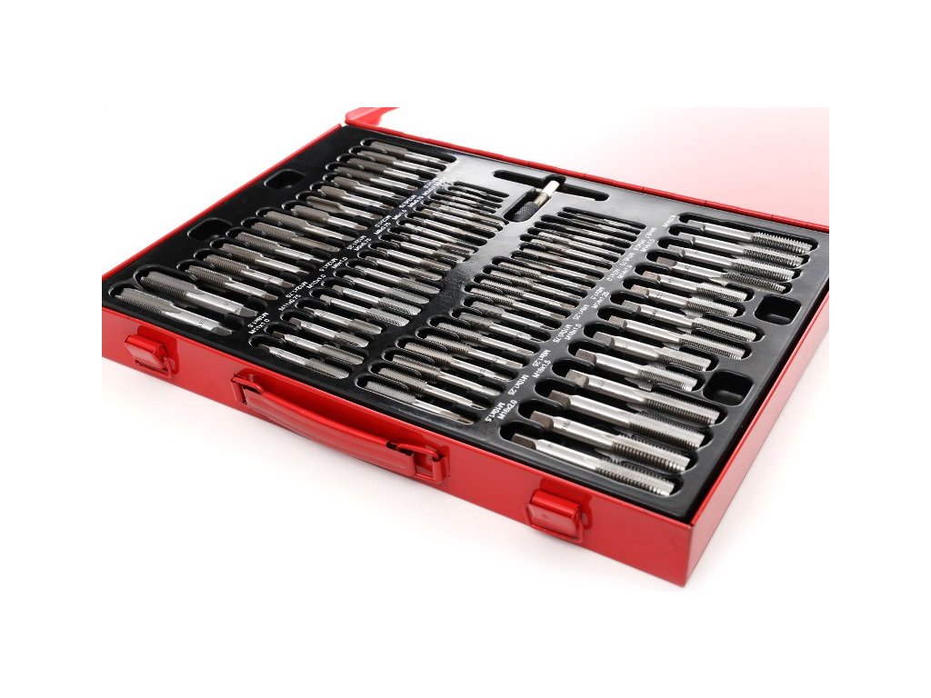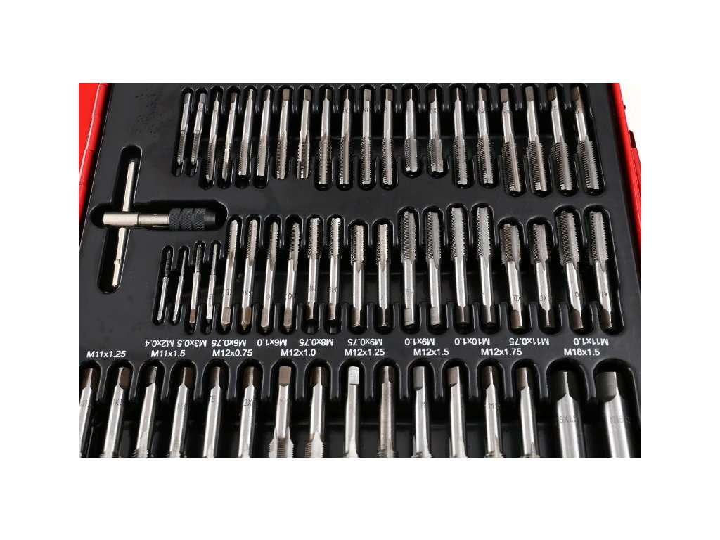 Set cu 110 tarozi și scule pentru filetare. Realizat din oțel tratat termic de cea mai înaltă calitate, va fi util în orice atelier sau garaj. Setul este destinat reparării filetelor interne de toate tipurile în majoritatea materialelor. Datorită numărului mare de piese, setul este foarte versatil.