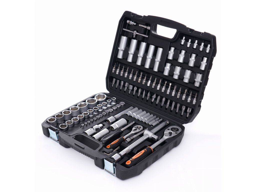 Întreaga trusă conține 101 piese diferite, care asigură o selecție potrivită de unelte în funcție de necesitate. Uneltele sunt fabricate din oțel crom-vanadiu tratat (CrV), destinat uneltelor de atelier. Cromul asigură rezistența oțelului la coroziune, oxidare, uzură și o mare rezistență la temperaturi înalte. Adăugarea vanadiului previne creșterea granulației în timpul procesării și, în același timp, sporește ductilitatea atât a oțelului călit, cât și a celui temperat.