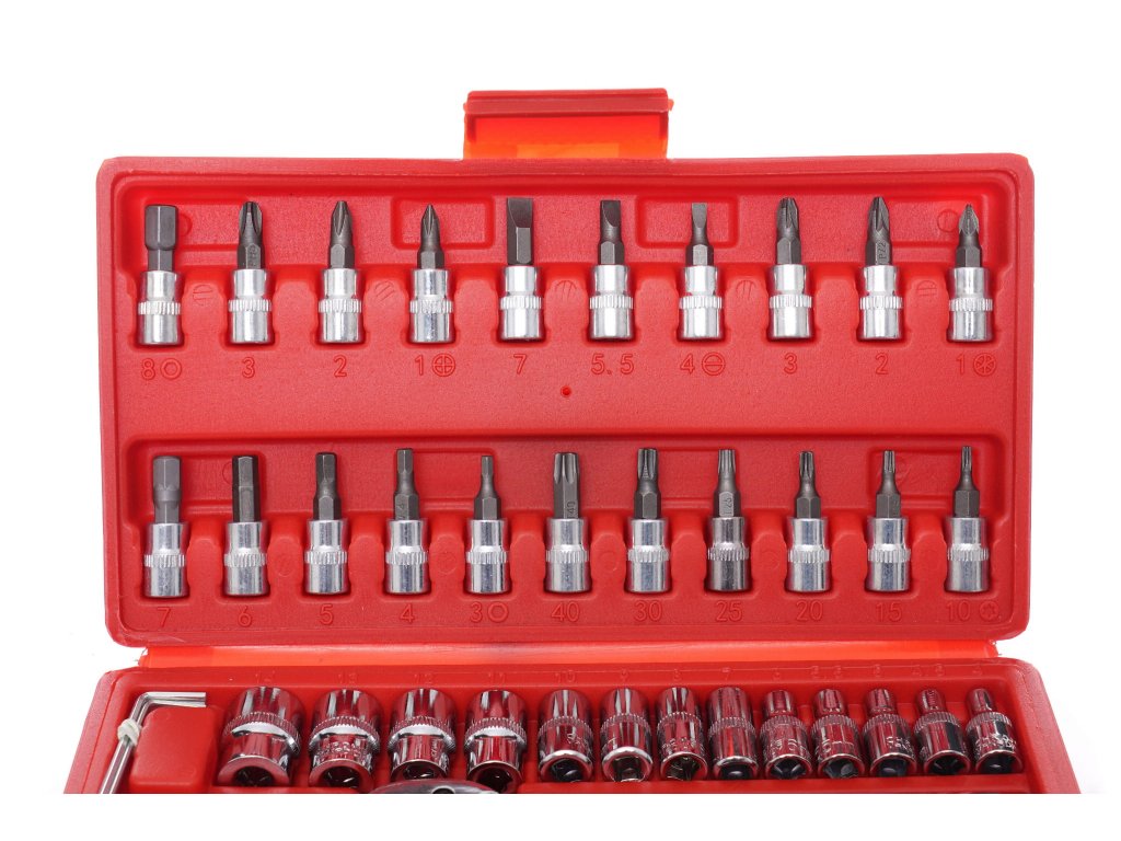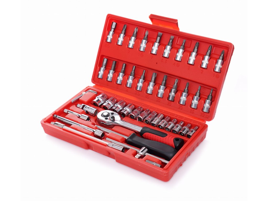 Set compact de unelte - 46 de piese din oțel crom-vanadiu include: