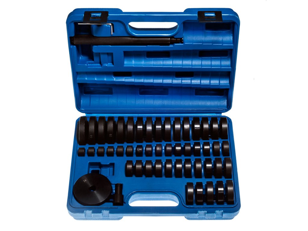 Set de unelte pentru montarea și demontarea rulmenților și a bucșelor, extractor bucșe rulmenți, adaptoare prese 18-74 mm 52 bucăți.