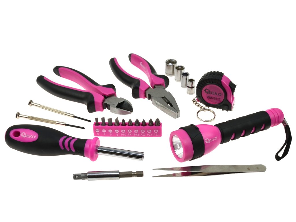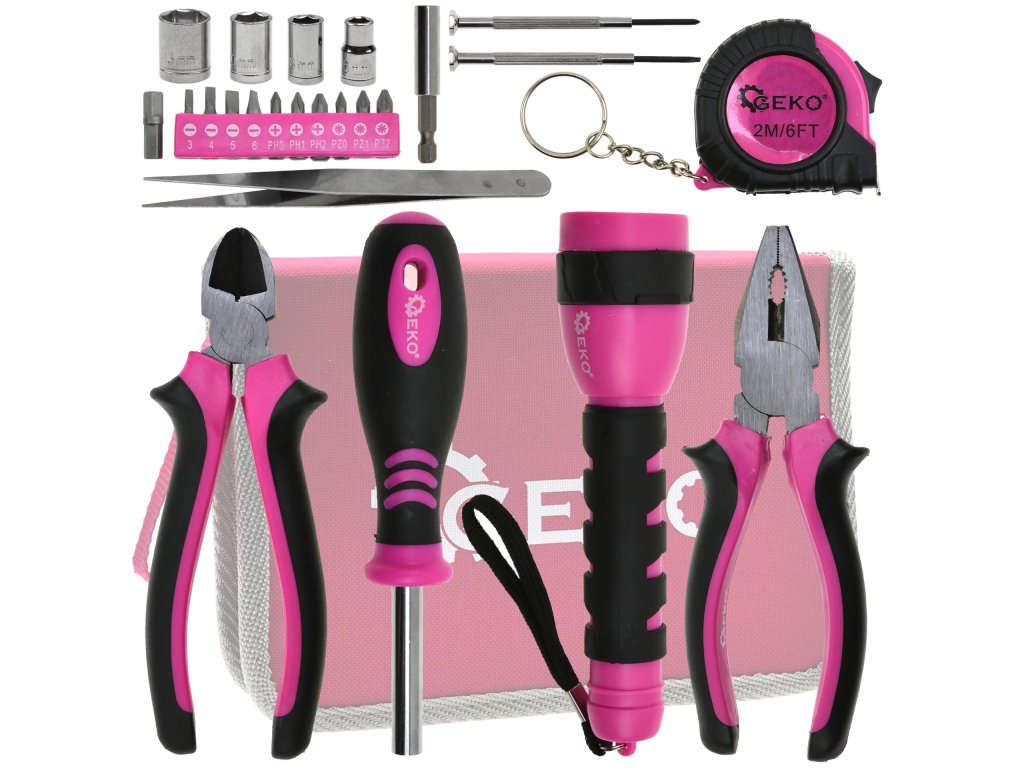Set de unelte universal pentru femei G10107 este ajutorul ideal pentru orice femeie, datorită designului său elegant roz. Acest set conține toate uneltele esențiale, indispensabile atât în casă, cât și în atelier.