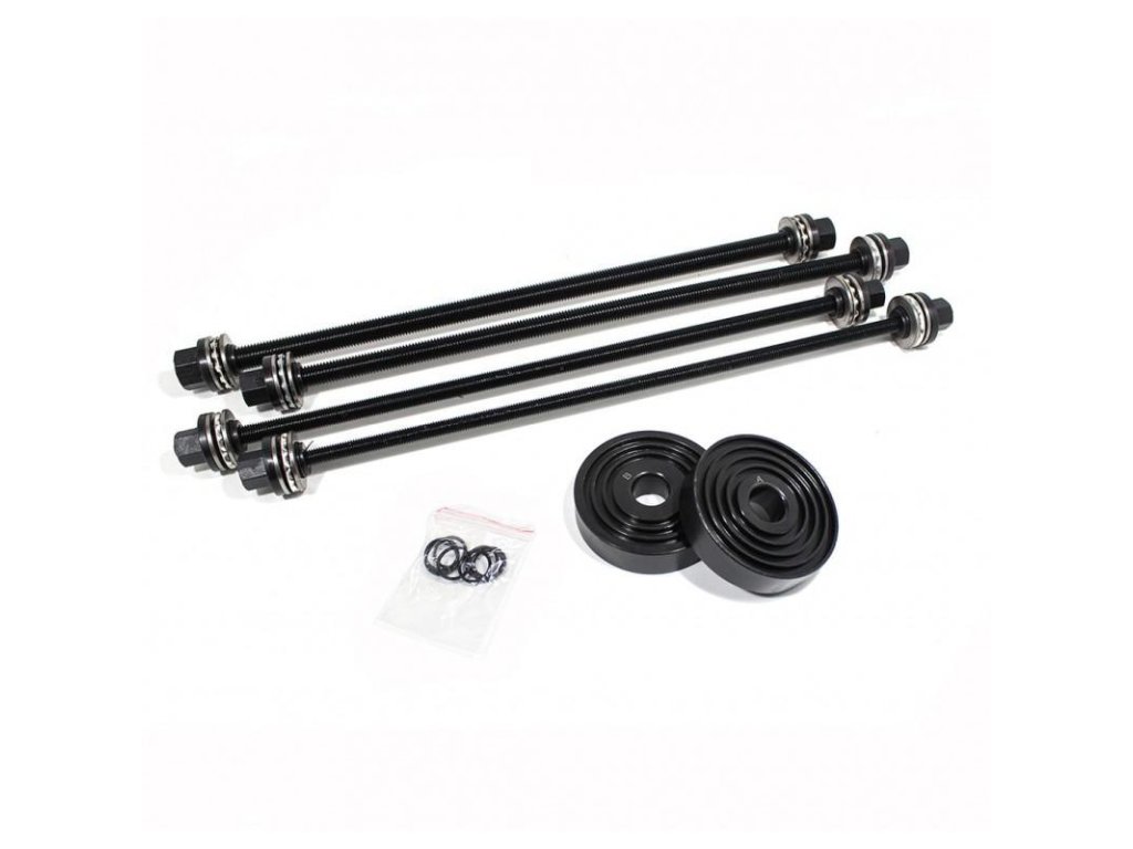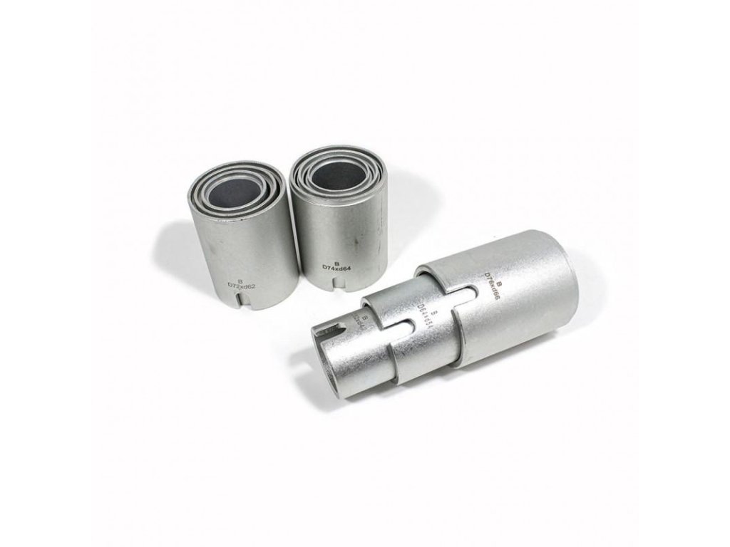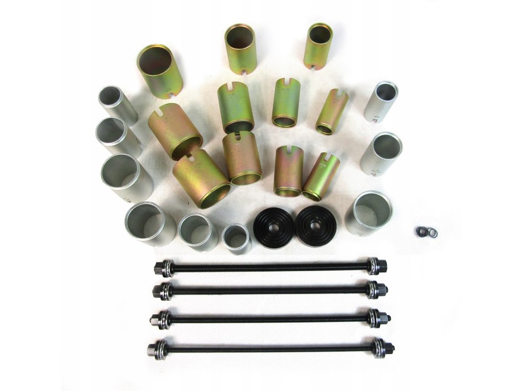 Setul este utilizat pentru presarea și extrudarea bucșelor metalice și de cauciuc într-o mașină fără a fi nevoie de demontarea brațelor. Poate fi utilizat pe o presă hidraulică sau cu o rolă de întindere.