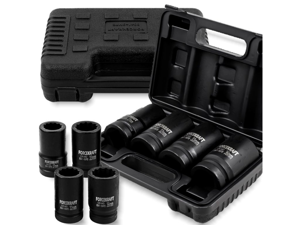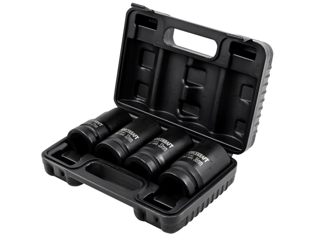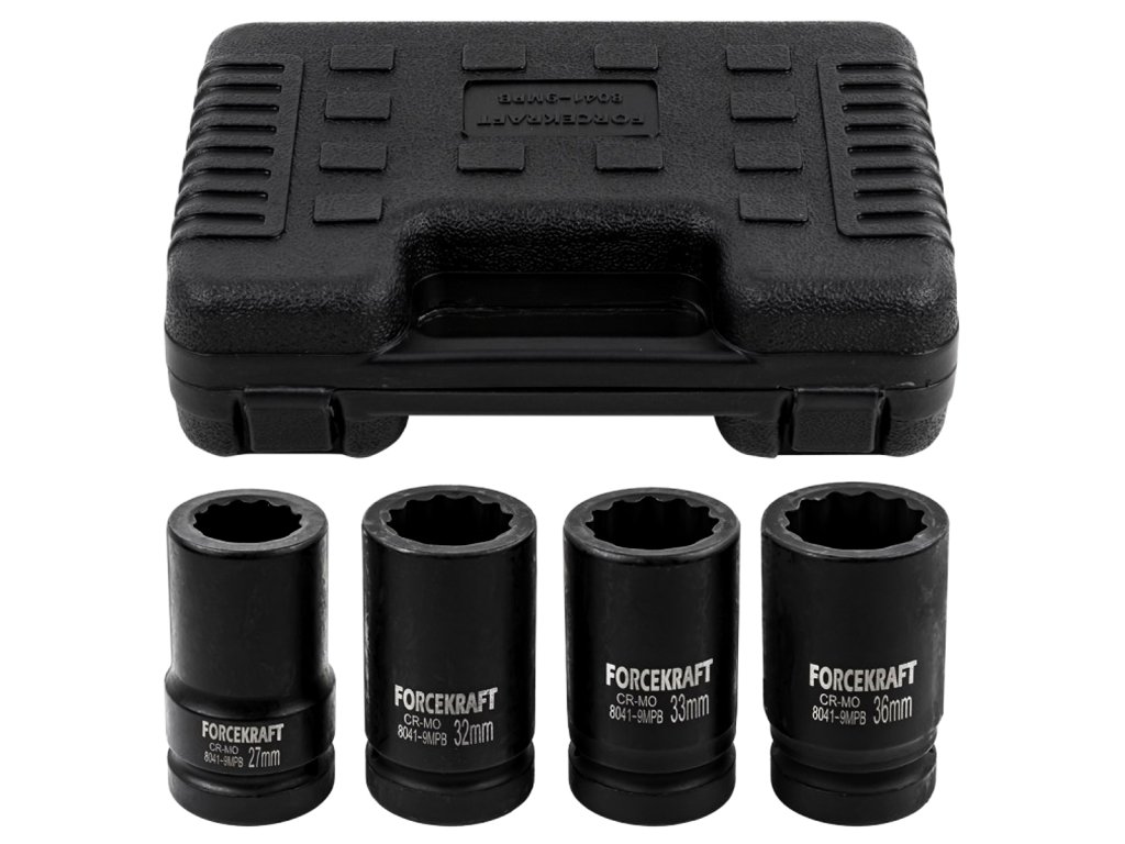 Set FORCEKRAFT de 4 chei tubulare de impact adânci 1" cu 12 laturi 27–36 mm în cutie