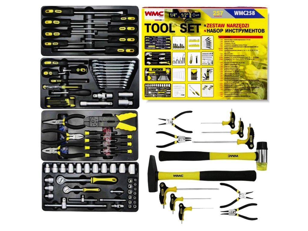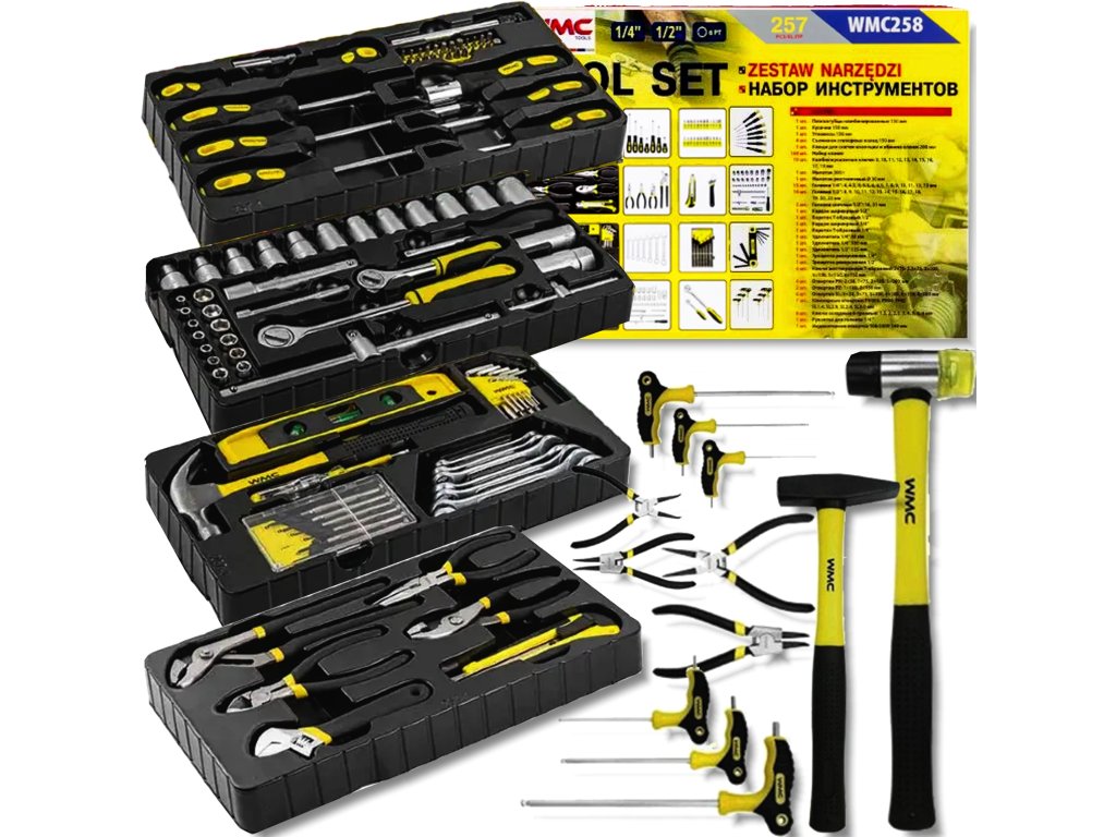 Set mare de scule WMC 257 buc - chei, tubulare, clichete, șurubelnițe