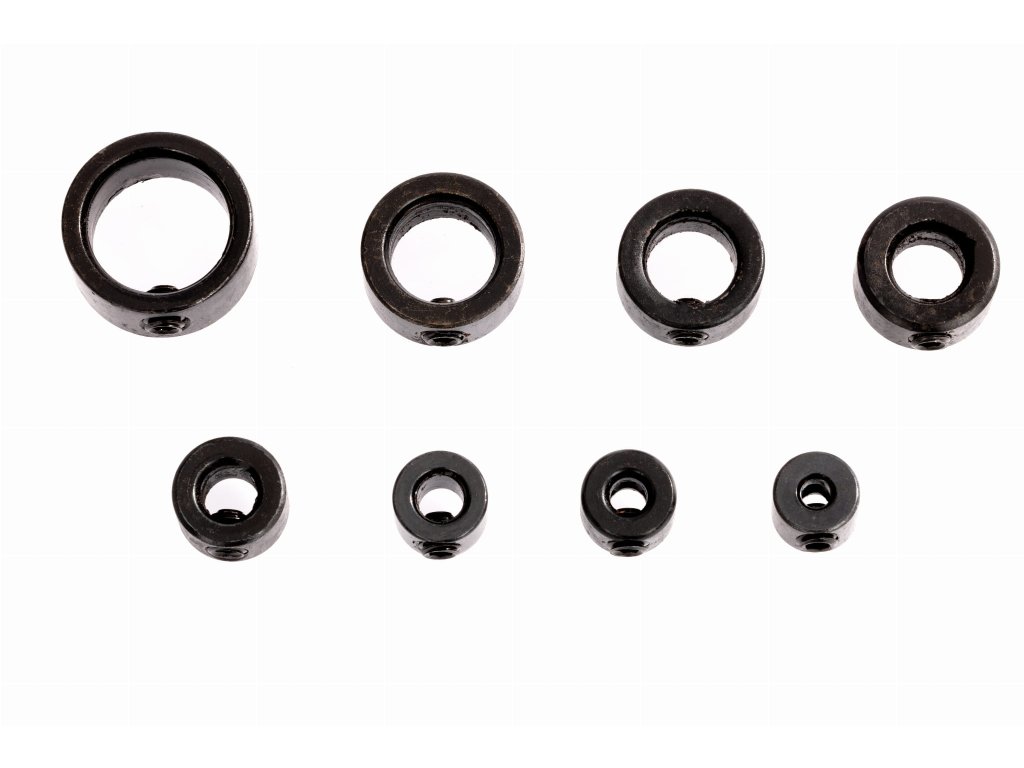 Setul de opritori pentru burghie marca Kraft&Dele model KD11253 este utilizat pentru a găuri mai multe orificii de aceeași adâncime. Este un inel metalic care se montează pe burghiu, fixat cu un șurub în carcasă.