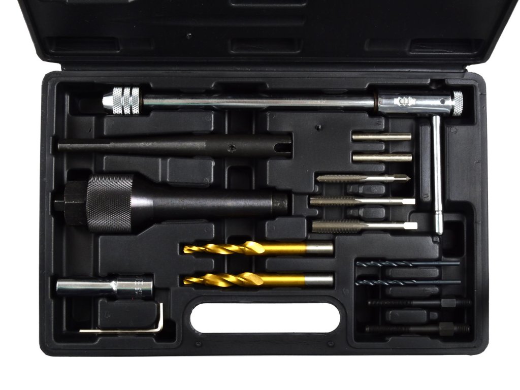 Setul profesional pentru demontarea bujiilor incandescentate rupte și repararea filetului este un instrument esențial pentru orice mecanic. Acest set permite demontarea bujiilor incandescentate cu filet M8 și M10 fără a fi necesară demontarea capului motorului. Este suficient să montați adaptorul pneumatic în locul injectorului corespunzător; aerul comprimat va împiedica pătrunderea resturilor rezultate în urma prelucrării în camera de ardere.