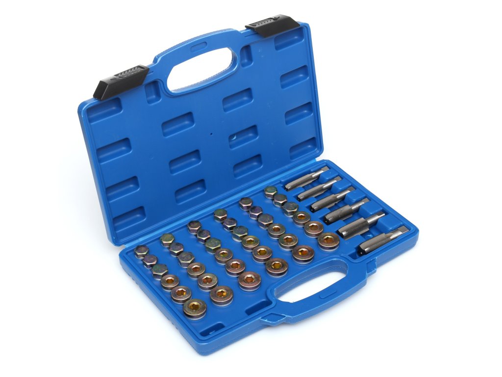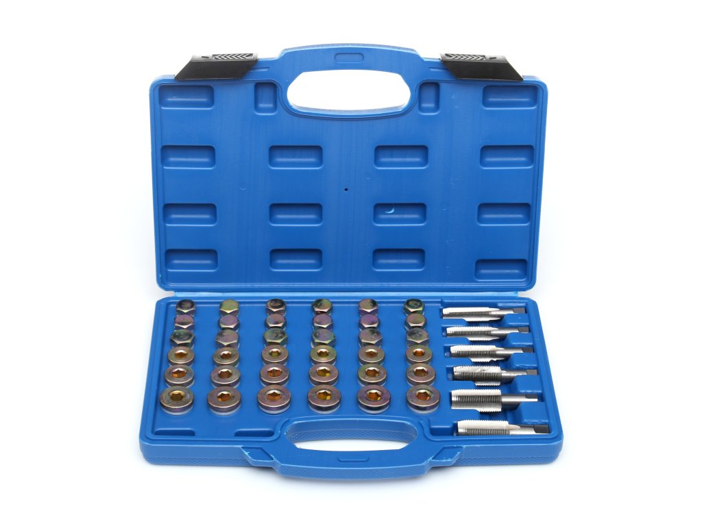Set profesional premium este soluția ideală pentru repararea filetelor la dopurile de scurgere ale tavii de ulei, cutiilor de viteze și altor componente. Acest set este conceput pentru a se potrivi cu majoritatea filetelor standard utilizate în automobilele personale și vehiculele comerciale ușoare.