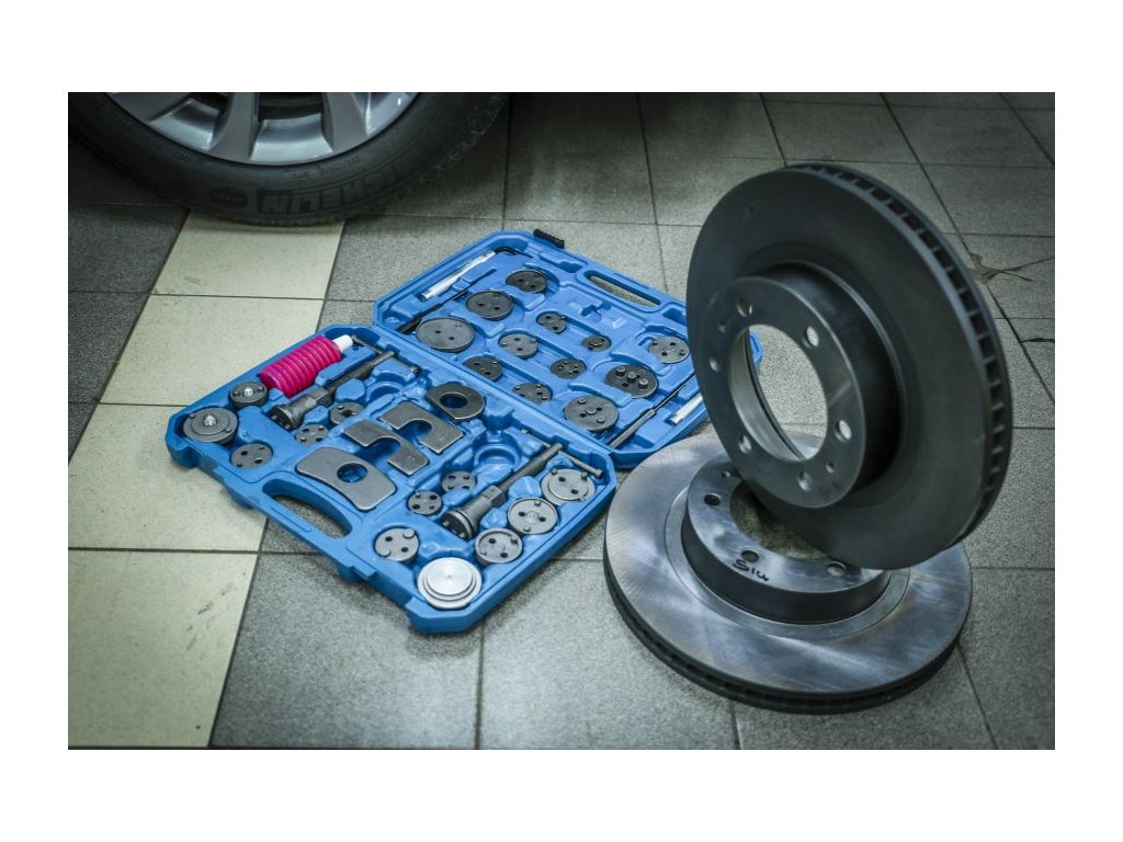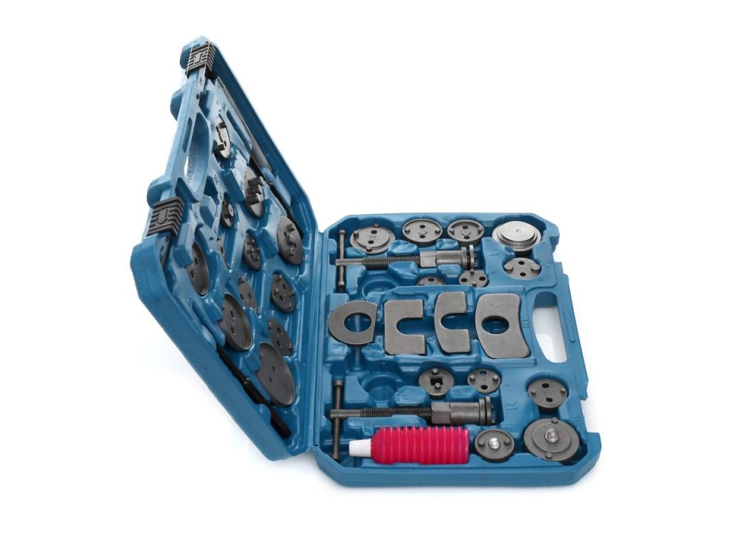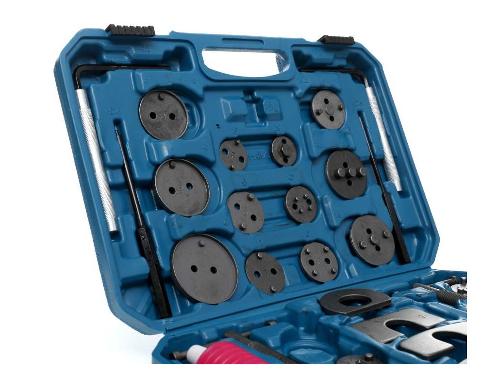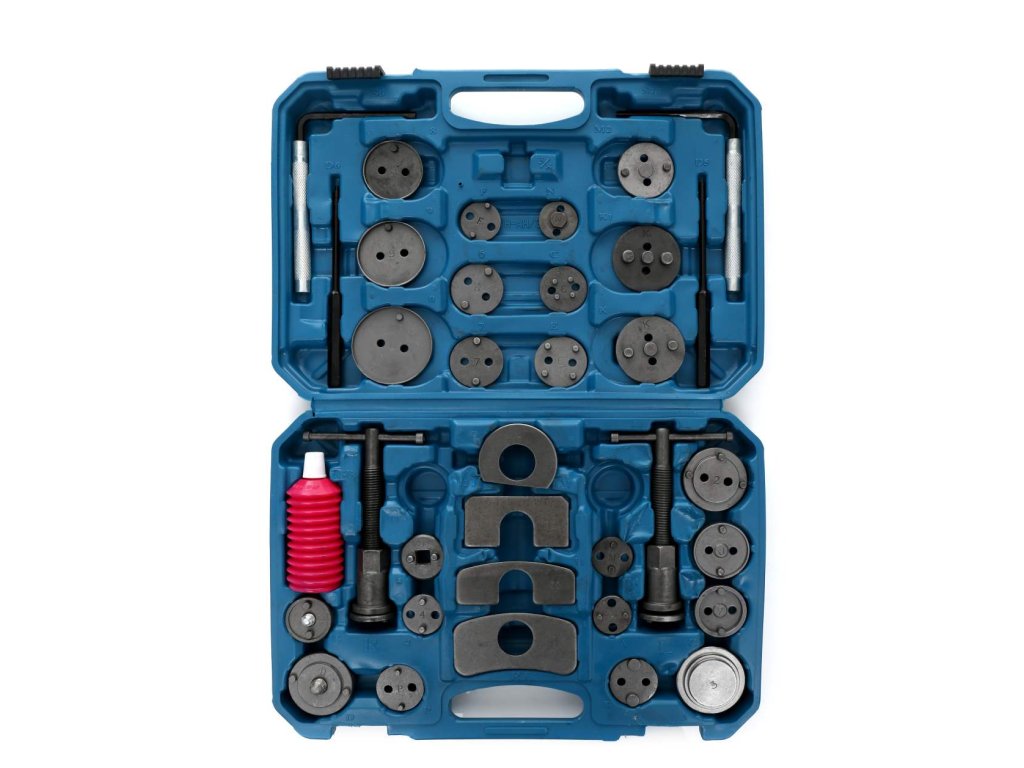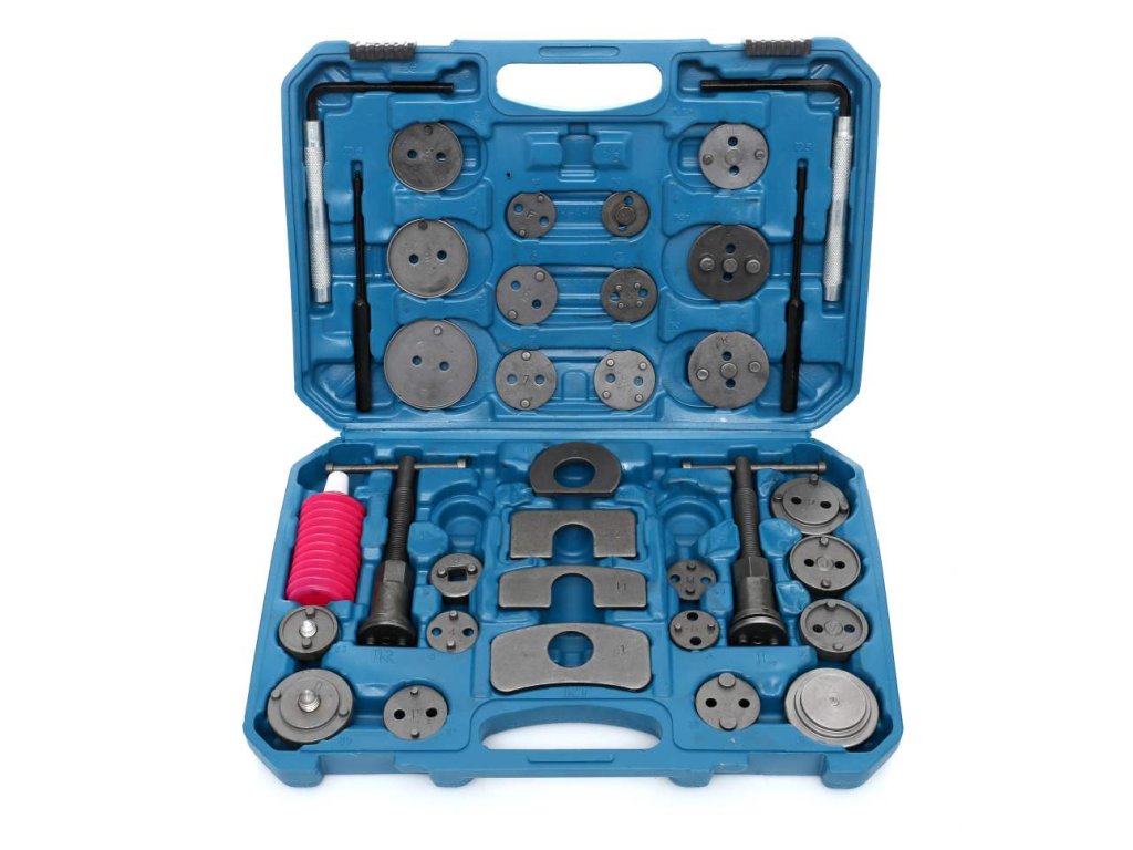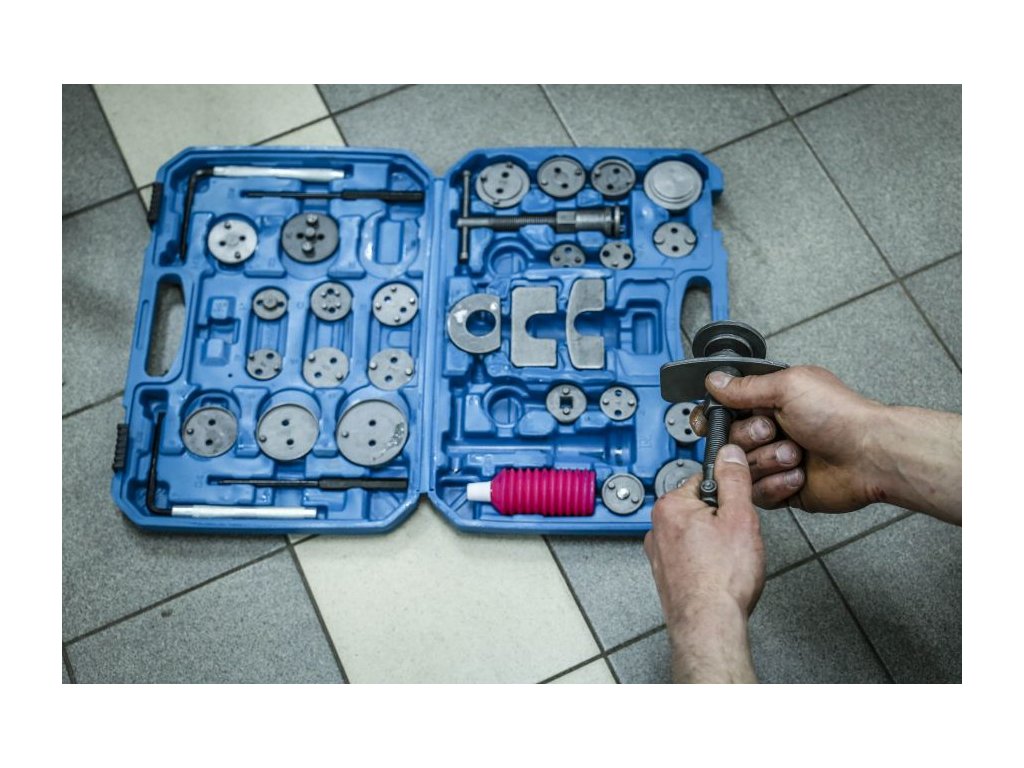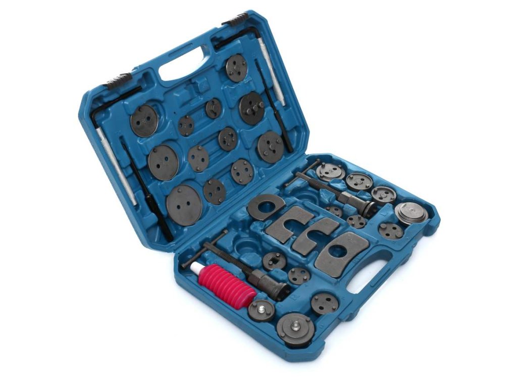 Set pentru repararea și comprimarea pistoanelor de frână 35 piese + cutie.