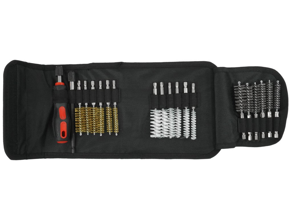 Set de perii profesionale pentru scaune injector, bujie și bujii incandescente. Setul contine 20 de elemente inclusiv pensule de diferite dimensiuni si materiale. Sunt incluse un mâner extensibil și un suport pentru șurubelniță. Totul este ambalat într-o cutie practică și convenabilă.