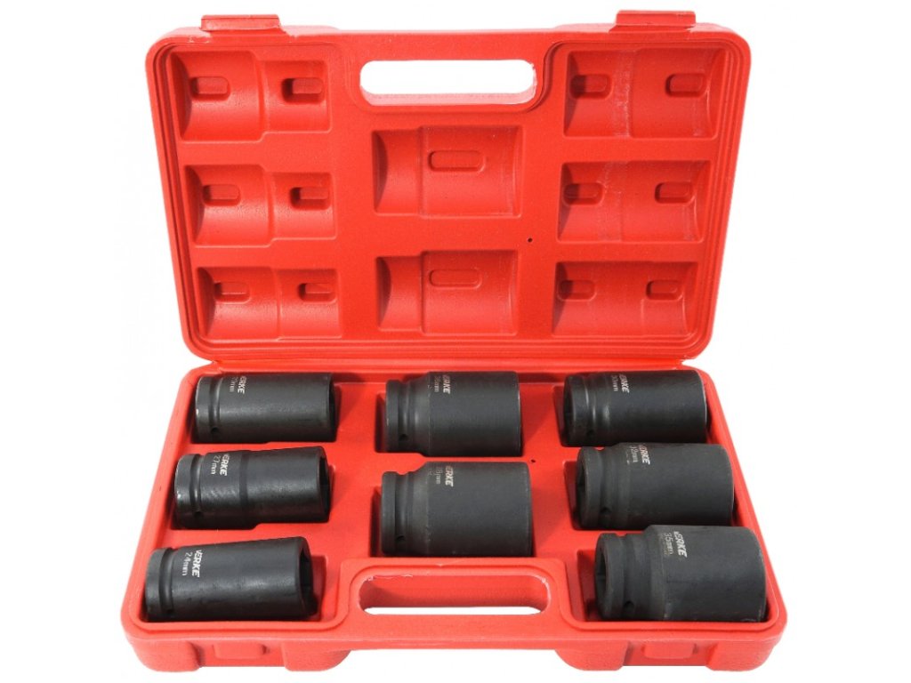 Un set de prize de impact este un instrument esențial pentru lucrul în fiecare service profesional și atelier auto. Setul include 8 atașamente de diferite dimensiuni concepute pentru chei pneumatice. Sunt fabricate din oțel forjat și călit de înaltă calitate, ceea ce le asigură durabilitatea și durata de viață lungă. Datorită tratamentului termic, fragilitatea materialului din care sunt fabricate a fost redusă și s-a obținut o duritate ridicată - se caracterizează prin rezistență la deteriorarea mecanică și la coroziune. Marcare clară a dimensiunilor atașamentului. Amplasat într-o cutie practică, convenabilă.