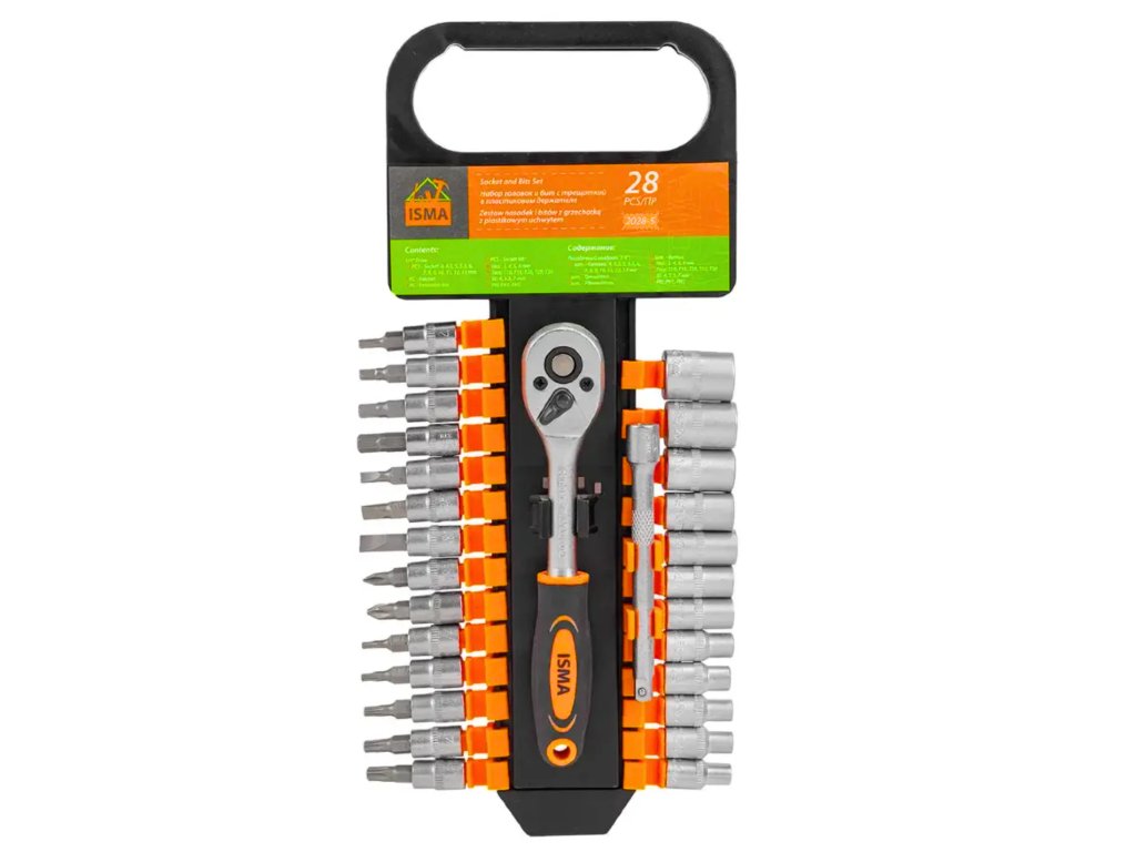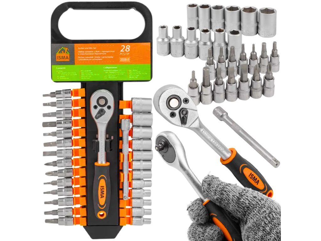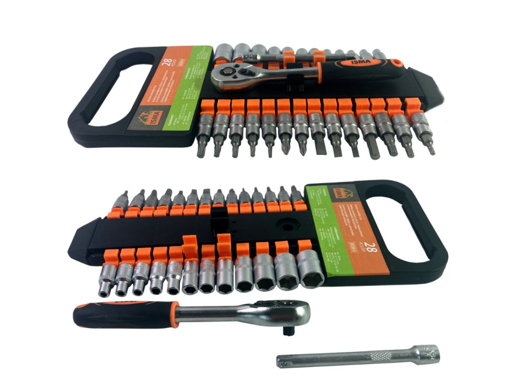 Set scule ISMA 28 buc, chei tubulare și biți 1/4", oțel CrV