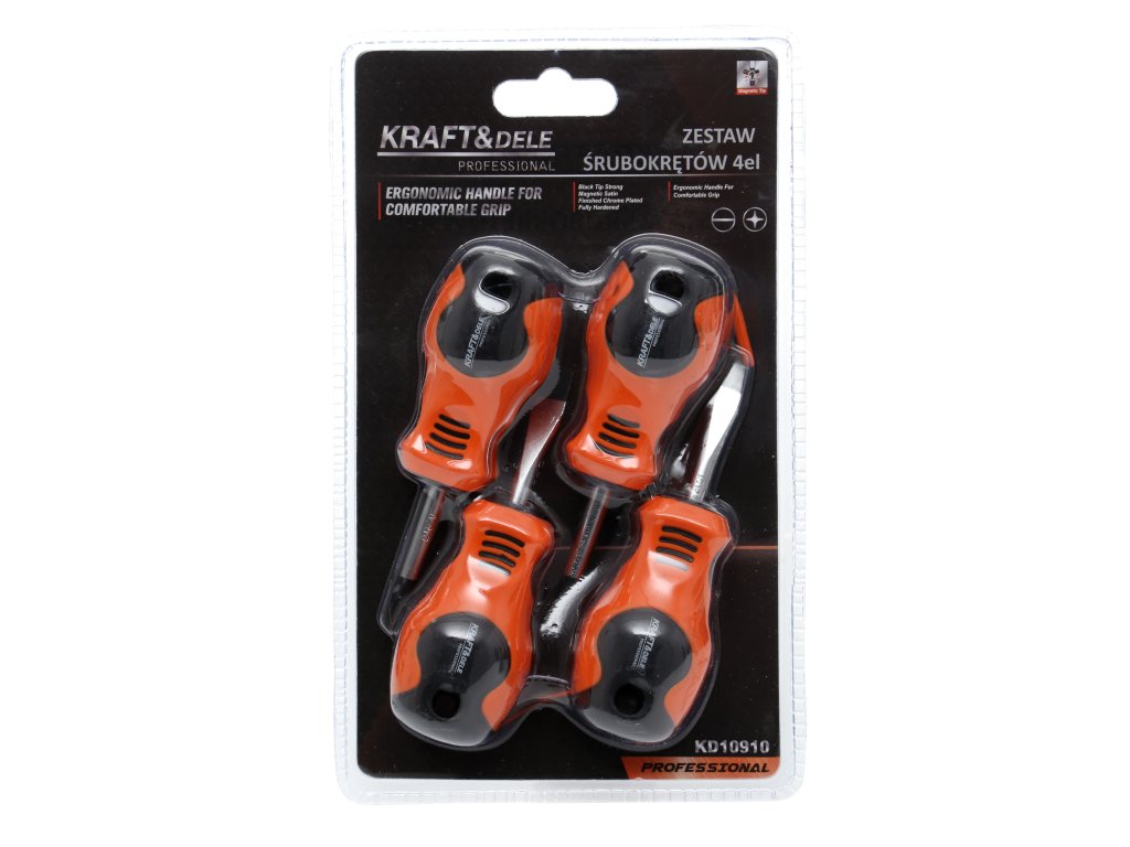 Set șurubelnițe 4 piese KD10910, de la marca Kraft&Dele, se dovedește în orice garaj sau atelier.