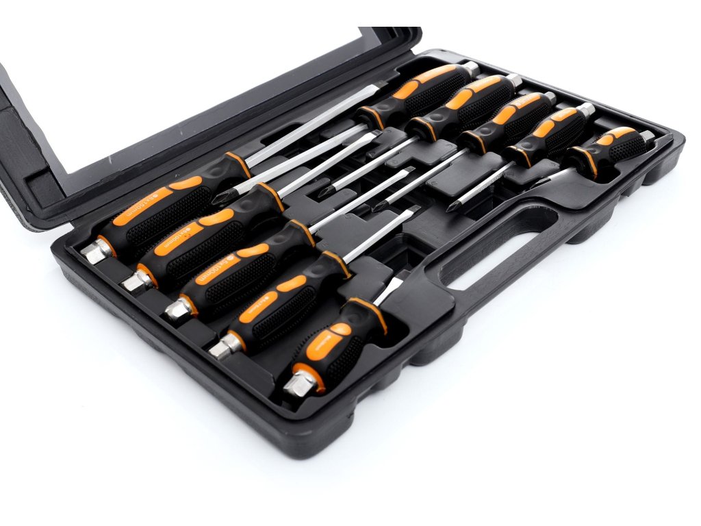 | Specificații: • Calitate înaltă a execuției • Material: Cr-V, vârfurile sunt tratate termic suplimentar • Brand dovedit KRAFT&DELE • Carcasă de transport robustă • Vârfuri magnetice • Mâner antiderapant • Lucru în siguranță |