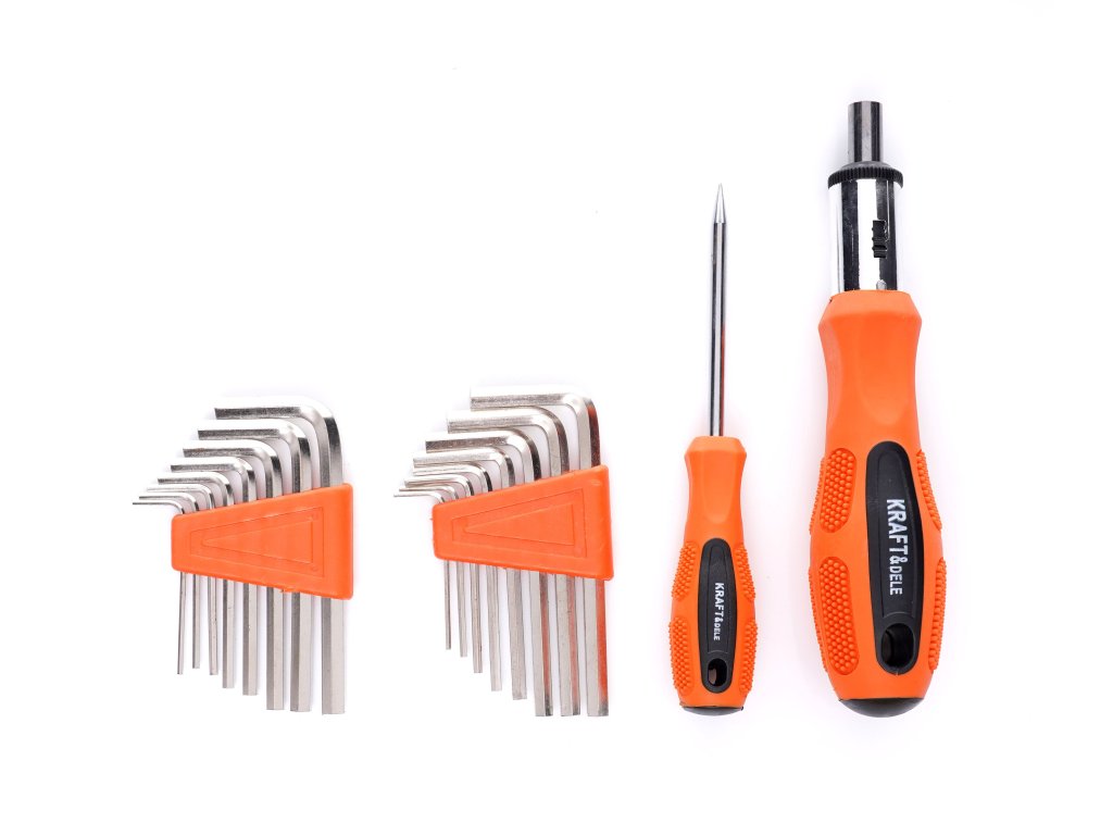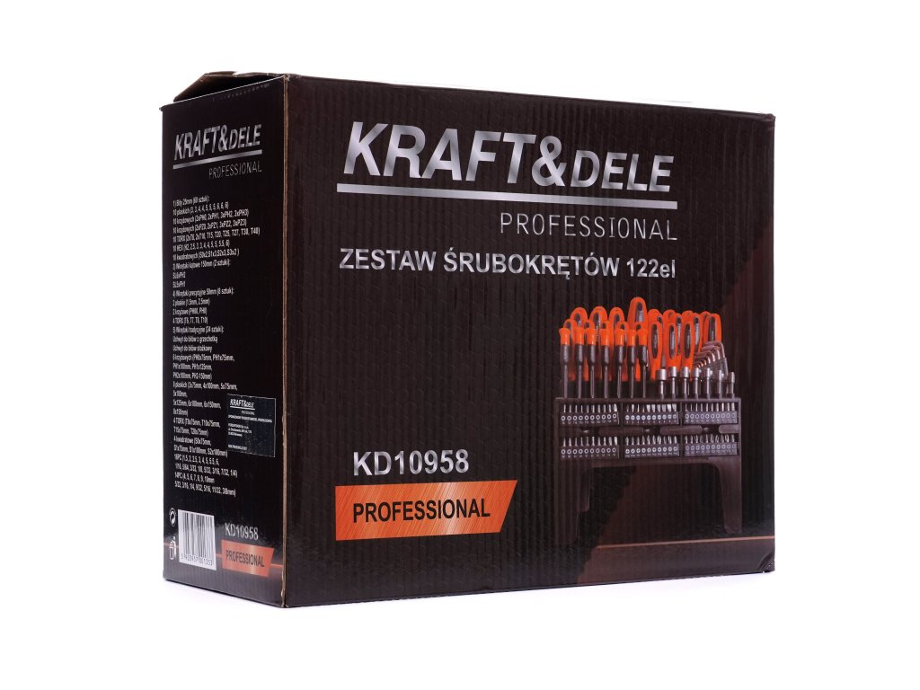 Setul de șurubelnițe și biți marca Kraft&Dele se va dovedi util în orice garaj sau atelier. Suportul inclus facilitează depozitarea șurubelnițelor.
