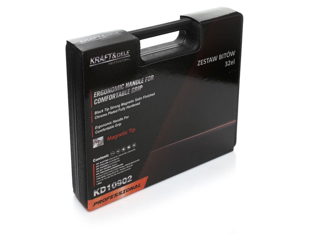 Set șurubelnițe și biți 32 piese KD10902 din Kraft&Dele se potrivește în orice garaj sau atelier. Carcasa atașată facilitează depozitarea șurubelnițelor.