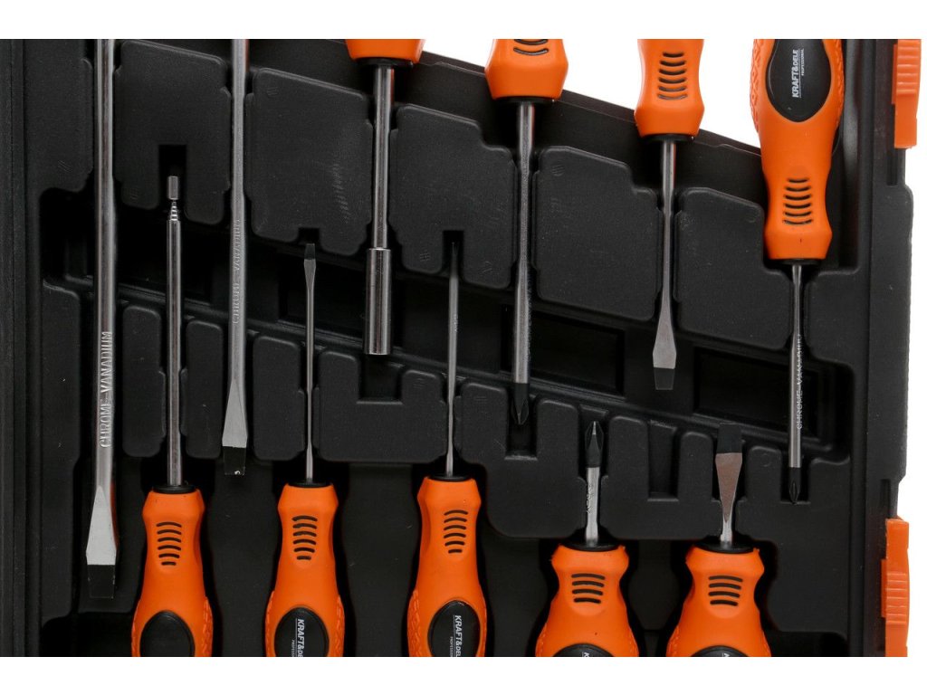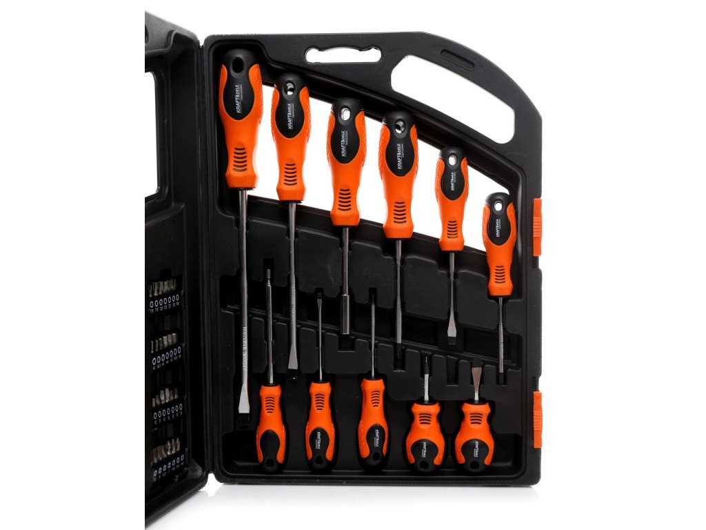 Setul șurubelnițe și biți KD10904 marca Kraft&Dele este ideal pentru orice atelier sau garaj. În pachet este inclus și un toc care ușurează depozitarea șurubelnițelor.