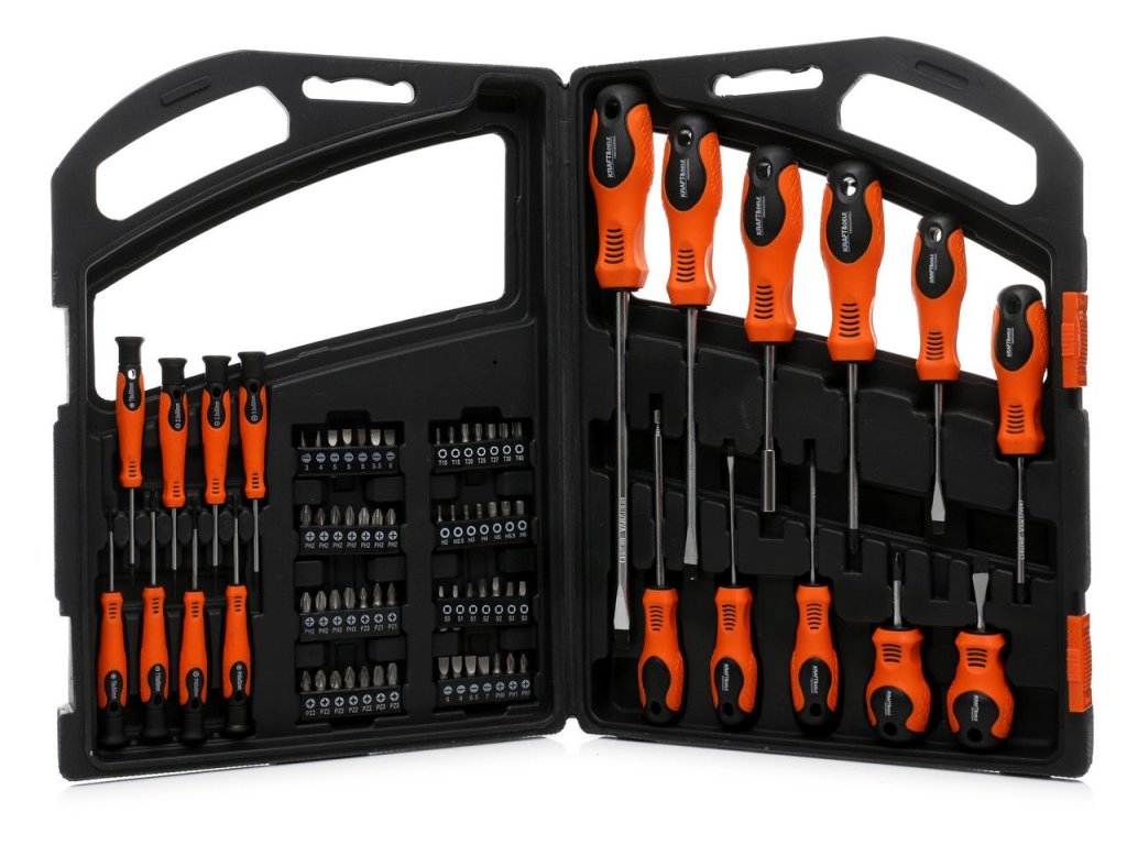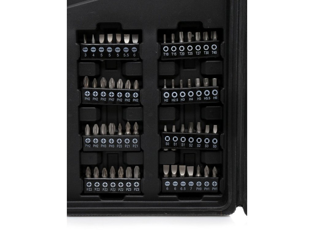 Utilizarea materialelor de înaltă calitate în fabricarea șurubelnițelor și biților le prelungește durata de viață. Setul conține 75 de elemente.
