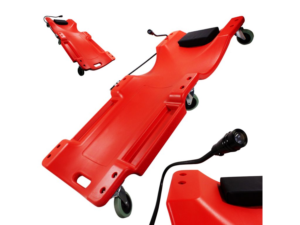 Șezlongul este fabricat din plastic durabil și este echipat cu șase roți , asigurând o mișcare lină și manevrabilitate. De asemenea, este echipat cu o lanternă pe o extensie flexibilă, care oferă iluminare suplimentară în locuri greu accesibile.