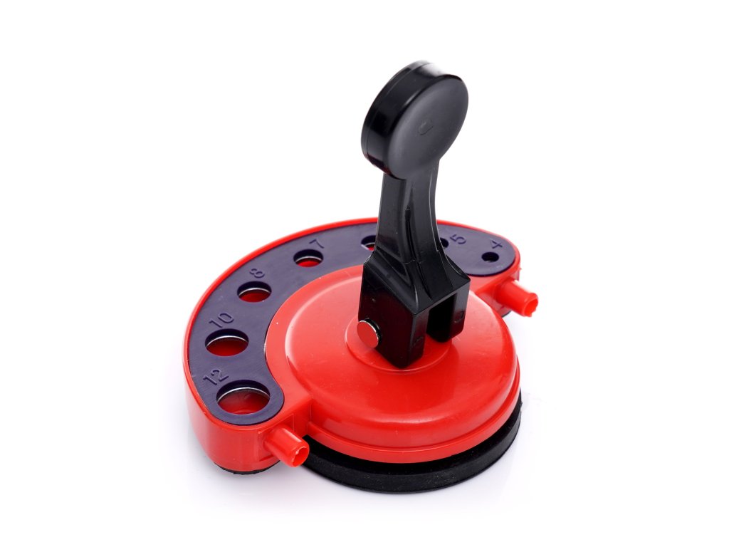Șina de ghidare este fabricată din plastic ABS rezistent și este compatibilă cu burghie de dimensiuni cuprinse între 4-12 mm. Dispune de o ventuză puternică cu un diametru de până la 6 cm și are 7 orificii de ghidare cu diametre: 4, 5, 6, 7, 8, 10 și 12 mm.