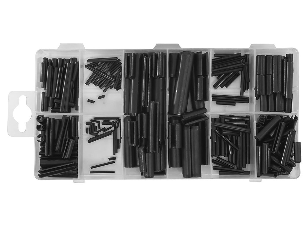 Acest set conține știfturi în dimensiuni de la 1,5x5 mm până la 10x50 mm . Totul este depozitat într-un organizator practic care facilitează sortarea componentelor individuale.