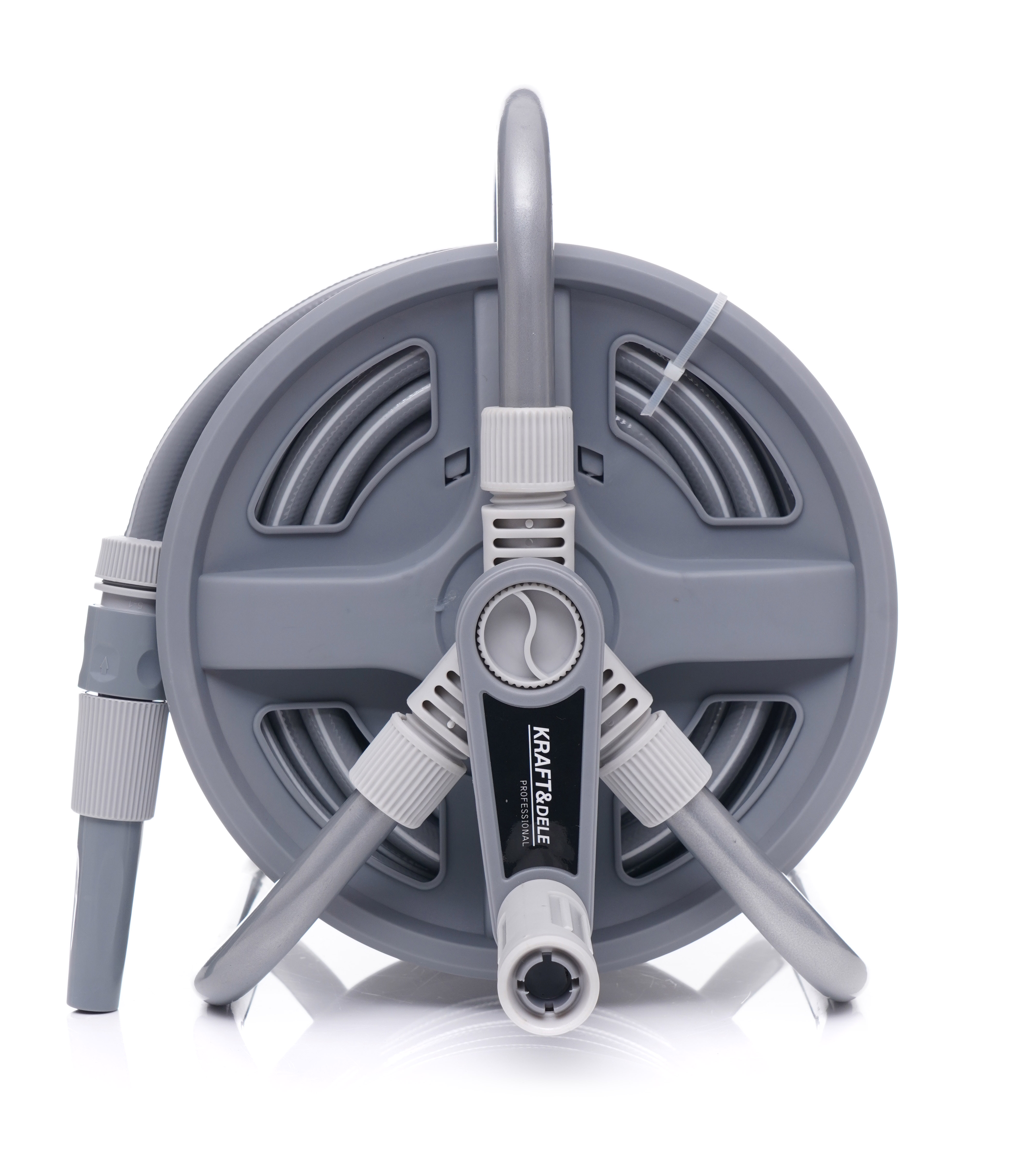 Suport pentru furtun de grădină marca Kraft&Dele, model KD2080, este soluția ideală pentru grădinarii care apreciază udarea rapidă și fără probleme. Suportul este fabricat din aluminiu de înaltă calitate, ceea ce îl face rezistent la coroziune și în același timp ușor. Furtunul, cu o lungime de 40 m și diametrul de 1/2" (3 straturi), este realizat din material PVC rezistent la razele UV.