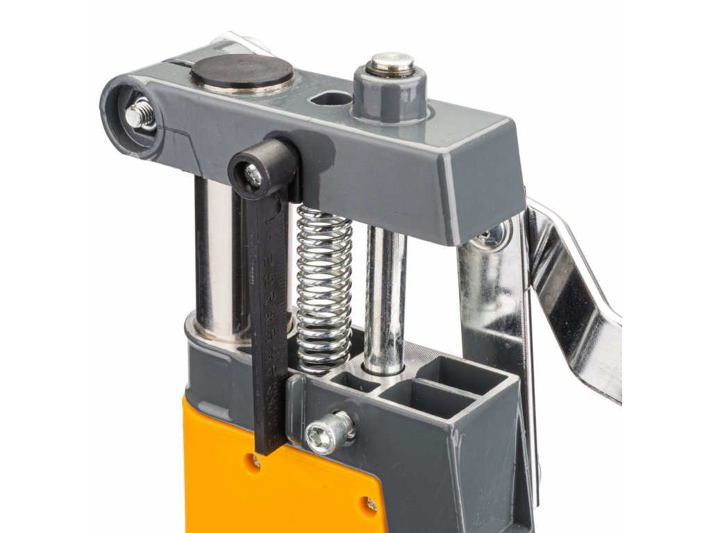 Suportul pentru bormașină transformă bormașina într-un dispozitiv multifuncțional și practic. Cu ajutorul acestuia, puteți realiza o schimbare verticală a poziției burghiului fixat, ceea ce asigură o funcționare stabilă și reduce riscul de rupere sau deteriorare a burghiului. Ideal pentru găuriri precise în diverse materiale. Corpul din aluminiu asigură o greutate redusă și o durabilitate mai mare. Controlul bormașinii fixate este asigurat printr-o pârghie cu arc, care permite întoarcerea automată a bormașinii la poziția inițială. Suportul vine cu o prindere universală pentru majoritatea burghielor manuale de 38-41-43 mm. Îl veți folosi în orice atelier de acasă sau unitate artizanală.