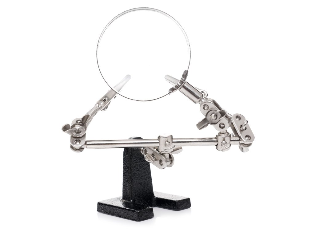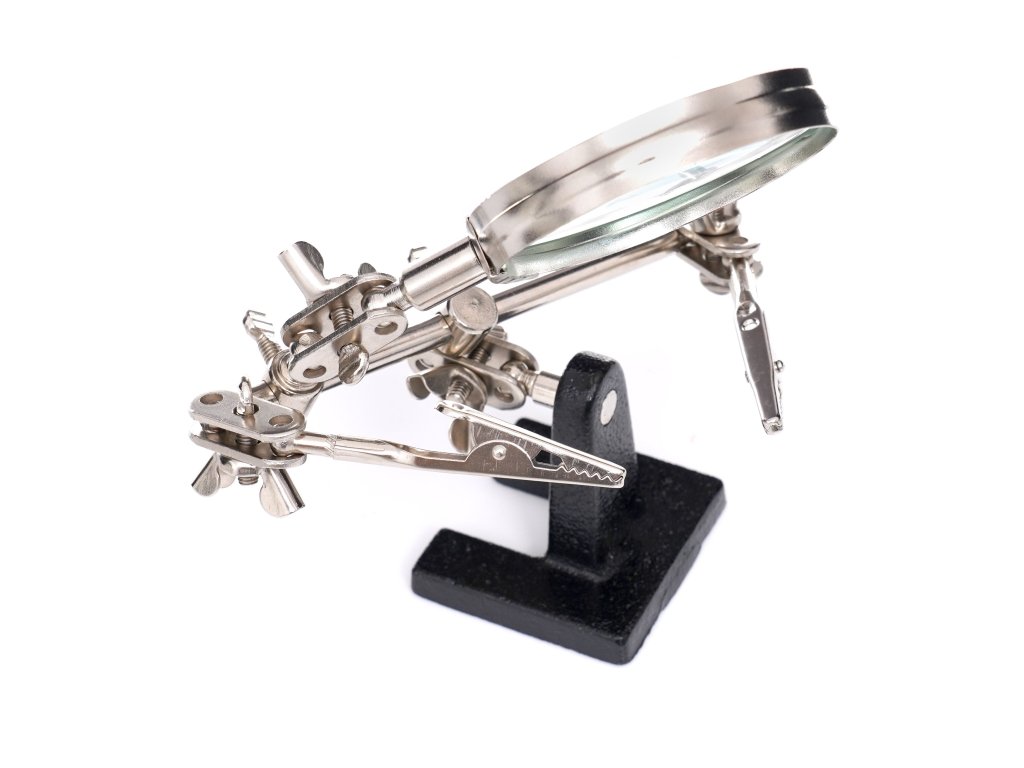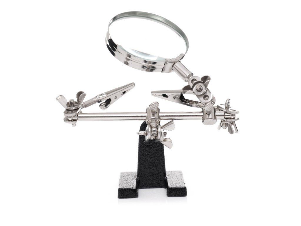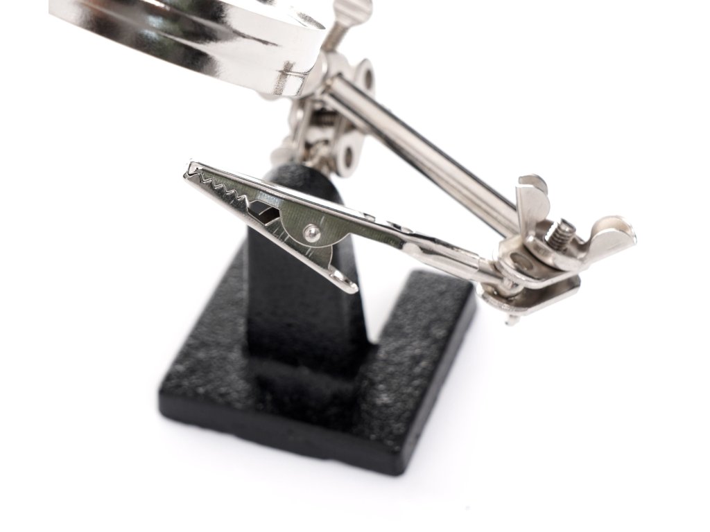 Suport pentru lucrări precise tip 'A treia mână' KD10454, un dispozitiv profesional al mărcii Kraft & Dele, destinat lucrărilor specializate ce necesită precizie. Ideal pentru lipire sau demontarea componentelor mici sau a firelor electrice. Este de asemenea foarte util la repararea bijuteriilor.