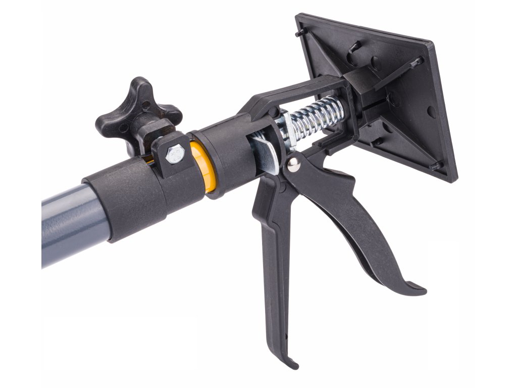Apăsarea simplă a unui buton permite extinderea treptată a tijei la o anumită lungime. Prin mutarea pârghiei de blocare, tija poate fi ușor introdusă în țeavă. Alt șurub de siguranță oferă posibilitatea extinderii suplimentare a țevii pentru o adaptare maximă.