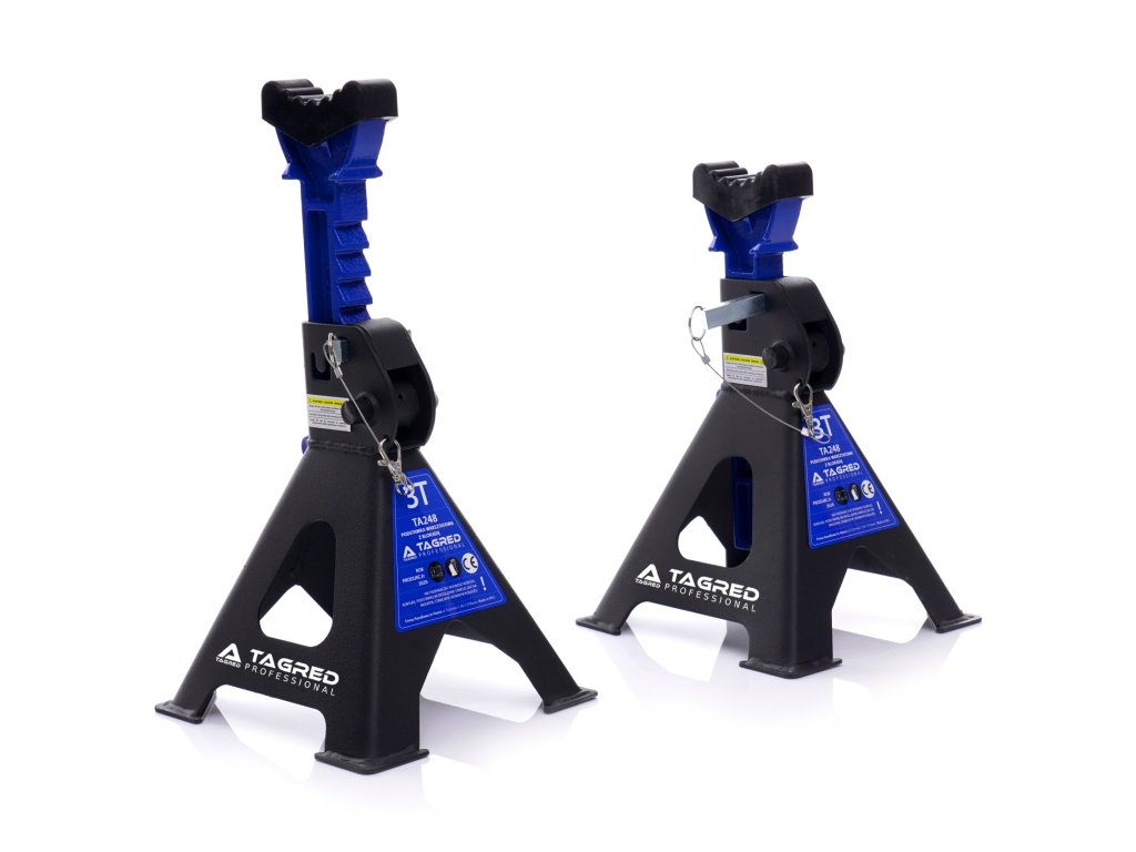 Suporturi TAGRED sunt concepute pentru a susține obiecte cu o greutate de până la 3 tone. Sunt fabricate din materiale de înaltă calitate, inclusiv tablă de oțel robustă. Aceste standuri sunt echipate cu blocare de siguranță, tampoane de cauciuc și un mecanism cu pini care permite o reglare foarte precisă a înălțimii pe multe niveluri.
