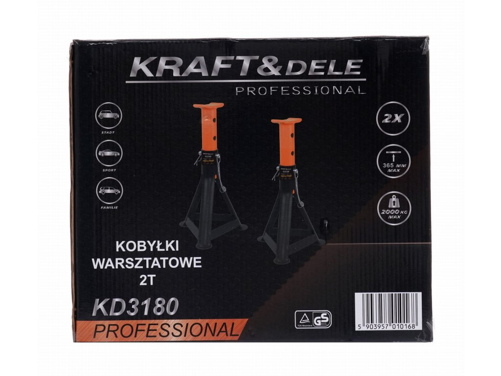 Standuri auto marca Kraft&Dele, model KD3180, cu o capacitate de ridicare de 2 tone. Sunt fabricate din oțel de înaltă calitate, rezistent la deteriorări mecanice, îndoire și la acțiunea agenților din atelier.