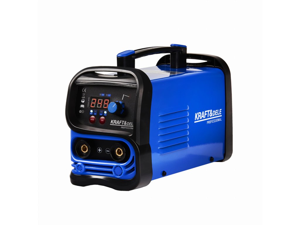 Sursă de sudură invertor de marcă Kraft&Dele, model KD1880, destinată sudurii manuale cu electrozi înveliți. Sudura cu electrozi înveliți este o metodă de sudură cu arc electric realizată cu un electrod înveliș liber de zgură.