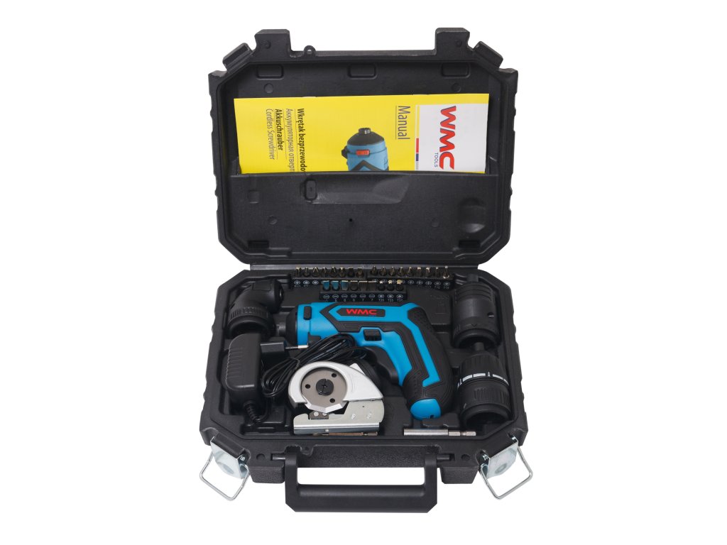 - 4 accesorii interschimbabile: accesoriu de reglare a cuplului, accesoriu de unghi, accesoriu excentric, accesoriu de tăiere