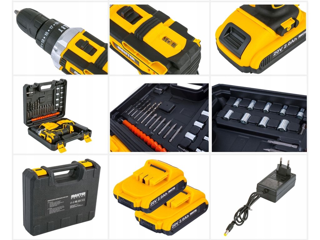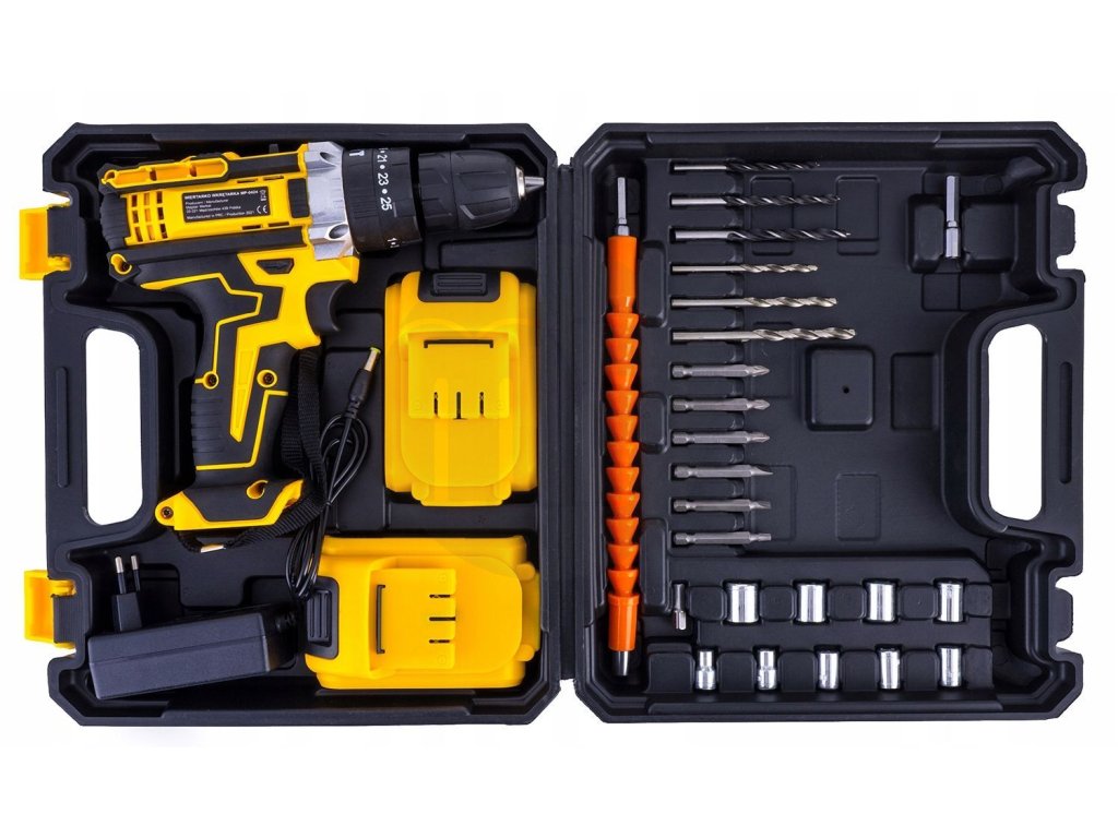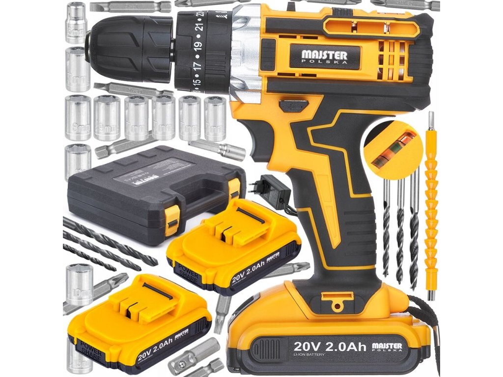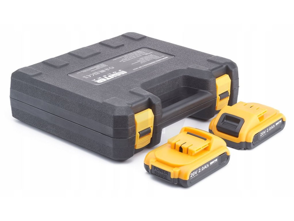 Șurubelniță cu acumulator cu percuție, biți, adaptoare și 2 baterii 20V