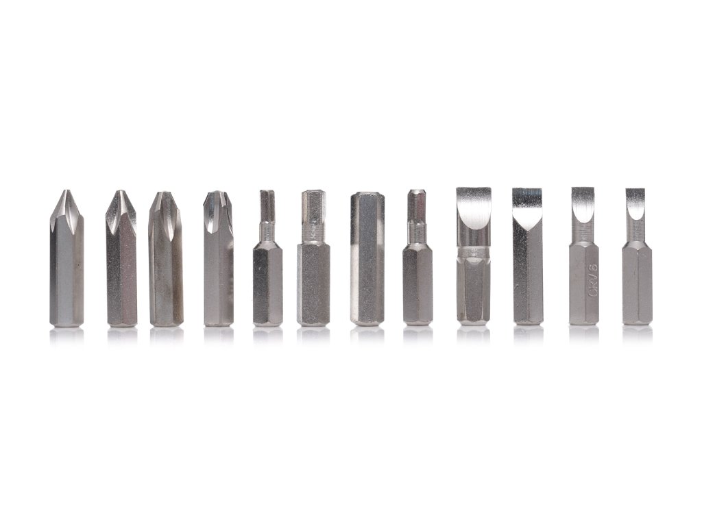 Utilizarea materialelor de înaltă calitate în timpul fabricării biților extinde durata de viață a acestora. Setul conține 13 elemente. Întregul set este ambalat într-o carcasă solidă și practică. Uneltele multifuncționale de la Kraft&Dele sunt indispensabile în orice atelier și pentru reparațiile minore din casă.