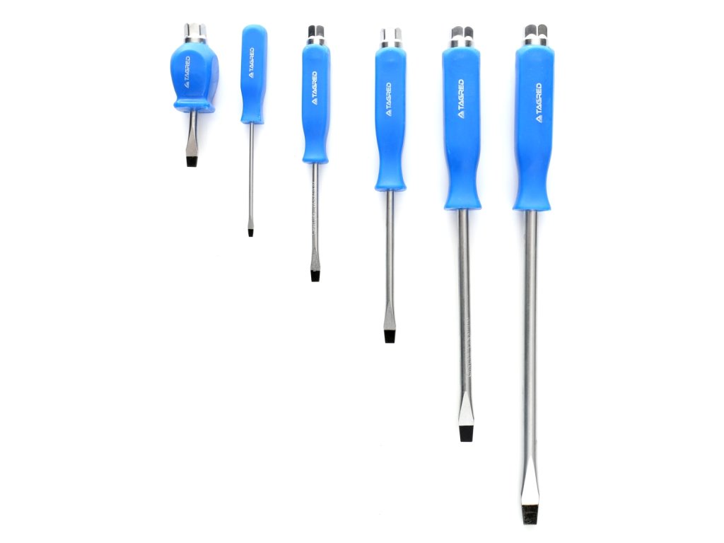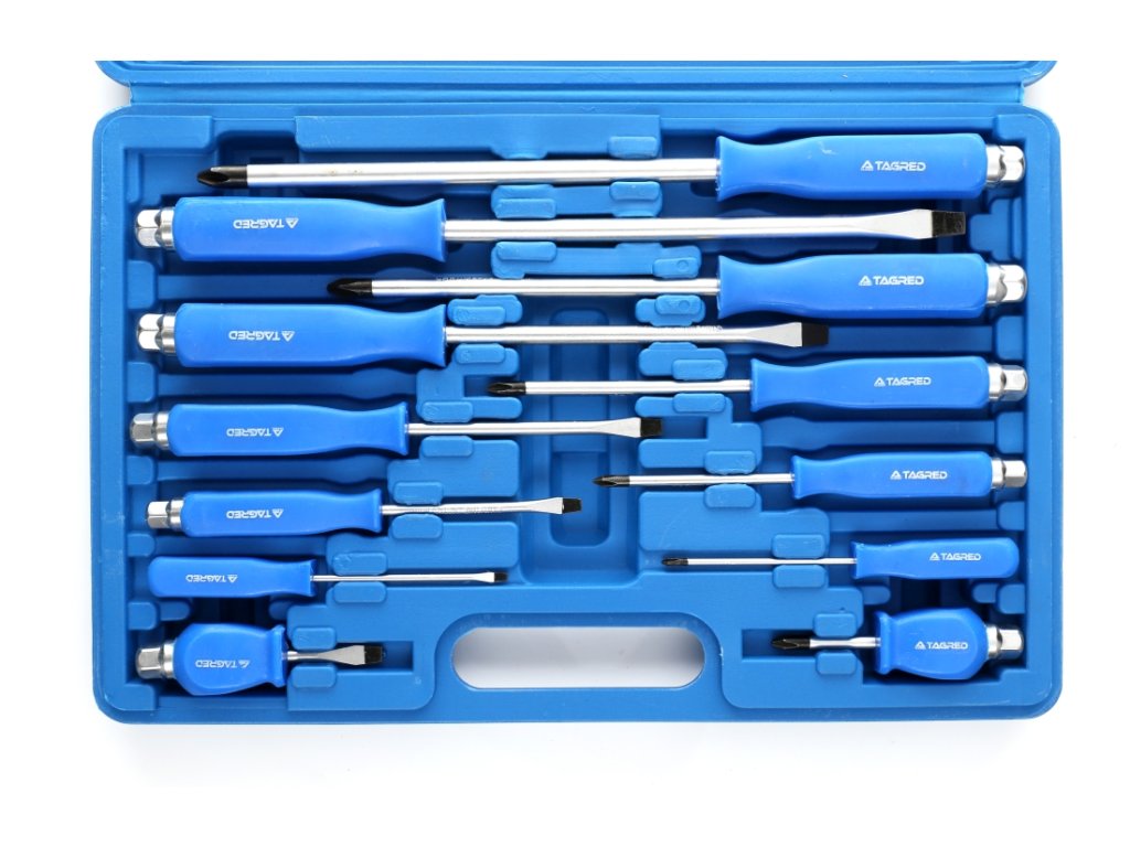 - Mânerele șurubelnițelor sunt ergonomic conturate și acoperite cu proeminențe din cauciuc pentru o prindere mai bună.