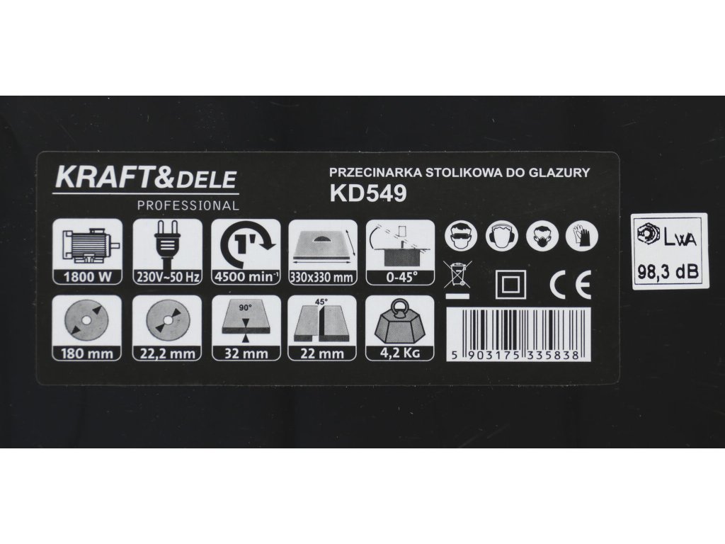 Modelul Kraft&Dele KD549 de tăietor de plăci este un utilaj revoluționar pentru tăierea precisă a tuturor tipurilor de plăci. Este echipat cu un disc diamantat și un recipient cu apă pentru răcirea discului. Sistemul de lucru umed cu utilizarea apei în dispozitiv permite o muncă aproape fără praf. Cu ajutorul dispozitivului puteți tăia plăcile standard, în unghi (orizontal) și, de asemenea, în „cară”. Masa este realizată din oțel zincat. Ideal pentru toate tipurile de lemn și plăci aglomerate. Datorită sistemului de lucru umed, apa previne supraîncălzirea discului, permițând tăierea mai îndelungată în condiții optime de lucru. Astfel, obțineți și o tăiere curată, ceea ce este foarte important la tăierea plăcilor. În partea de jos, în carcasă, există un orificiu prin care discul de tăiere cu diamant este umezit cu apă din recipient.