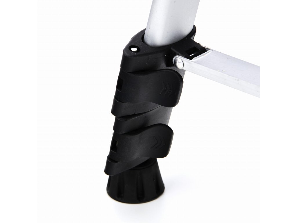 Cadrul este fabricat din aluminiu, echipat cu un mâner și picioare extensibile. Produsul stă ferm pe sol datorită extensiilor de cauciuc de înaltă calitate.