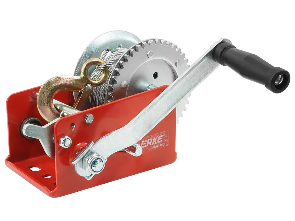 Acest troliu cu o construcție robustă din oțel este conceput pentru recuperarea bărcilor mici, jet-ski-urilor, ATV-urilor, vehiculelor mai mici etc. Are o maneta usor accesibila pentru schimbarea sensului de rotatie: infasurare/desfasurare. Troliul este fabricat din materiale de înaltă calitate cu durabilitate adecvată - oțel structural și cârlig din fontă cu arc de retur. Dispozitivul este acționat de o manivela împreună cu un mecanism cu clichet, care permite ridicarea și coborârea obiectelor. Poate fi folosit, printre altele, pentru tensionarea plaselor de gard, legarea, asigurarea și târarea obiectelor grele și mari.