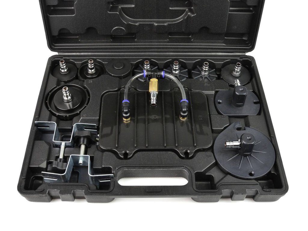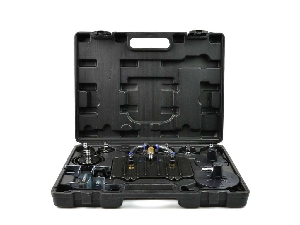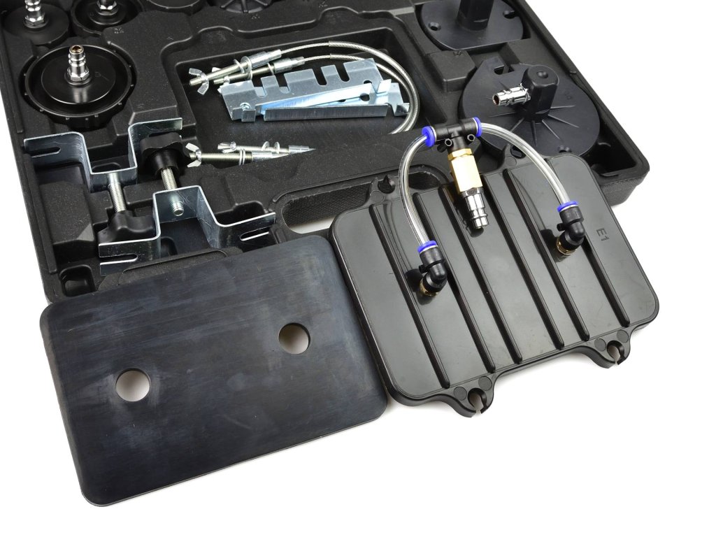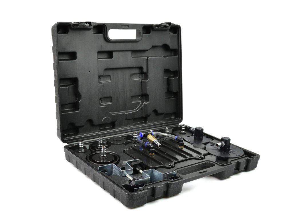 Set pentru întreținerea sistemului de frânare este o unealtă practică, care permite unei singure persoane să schimbe ușor și rapid lichidul în sistemul de frânare și în ambreiajul hidraulic. De asemenea, asigură aerisirea rapidă a sistemului de frânare. Pachetul include un geantă practică cu set de adaptoare, care permite întreținerea majorității sistemelor de frânare.