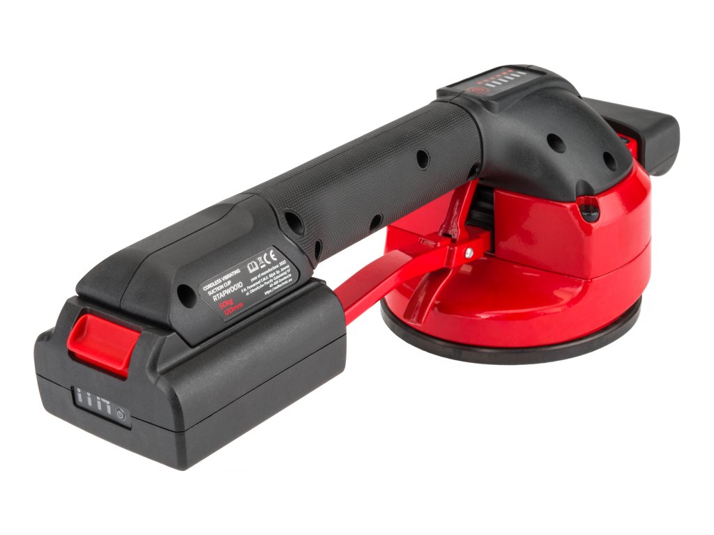 Ventuza RTAPW0010 alimentată de un acumulator litiu-ion de 18 V este ideală pentru utilizarea atât în interior, cât și în exterior. Înlocuiește munca manuală tradițională și elimină problemele de distribuție neuniformă a adezivului sub plăci și panouri mari. Forma sa specială și mânerul dublu asigură stabilitatea încărcăturii în timpul ridicării și așezării plăcilor, facilitând controlul. Elementele tactile moi de pe mâner oferă confort ergonomic și siguranță. Datorită designului compact și ușor, dispozitivul este ușor de manevrat și poate ridica plăci cu o greutate de până la 50 kg. Vibrațiile îndepărtează eficient bulele de aer care pot provoca fisuri în adezivul de sub plăci. Puteți regla intensitatea vibrațiilor în funcție de forța de presiune pe comutator.