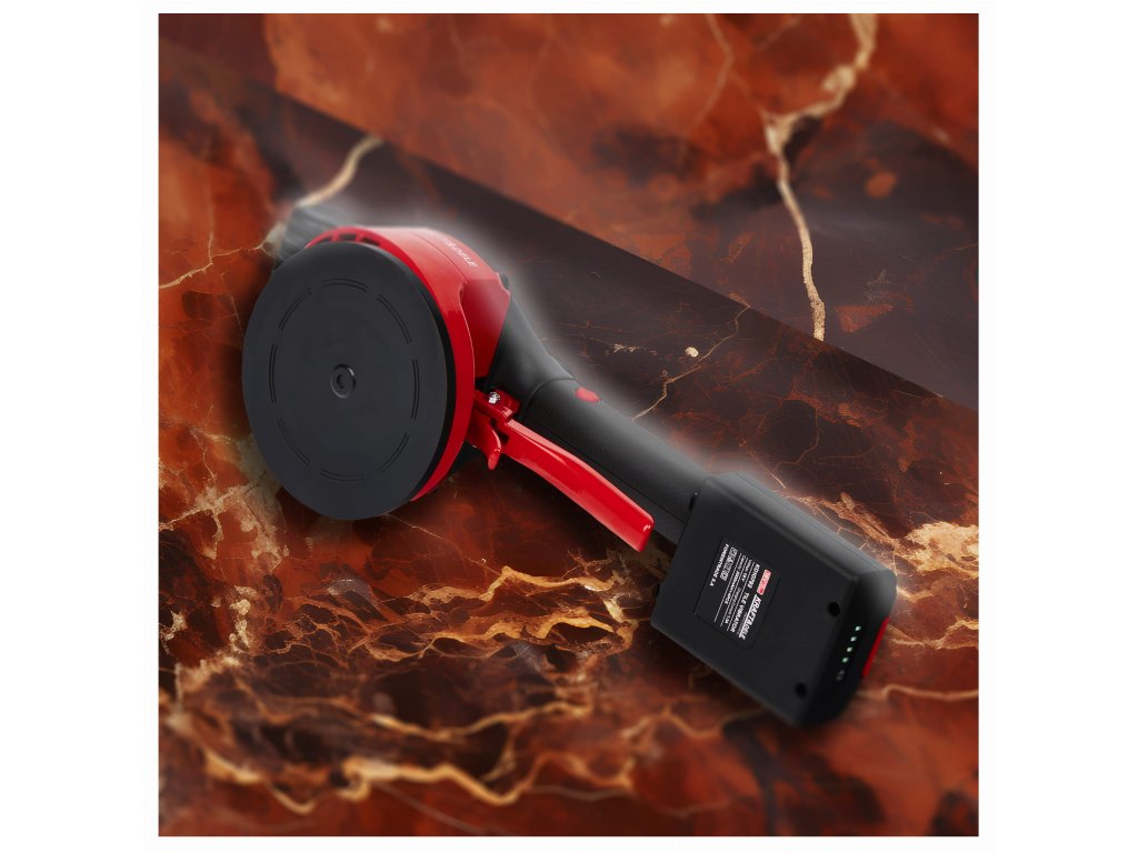 Ventuză vibrațională fără fir pentru montarea plăcilor Kraft&Dele, model KD10792. Permite poziționarea facilă a plăcilor cu ajutorul ventuzei, cu capacitatea de ridicare a obiectelor până la 50 kg. În plus, datorită funcției vibraționale elimină bulele de aer rămase, care pot provoca eventuale fisuri, asigurând o legătură solidă și durabilă între plăci și substrat.