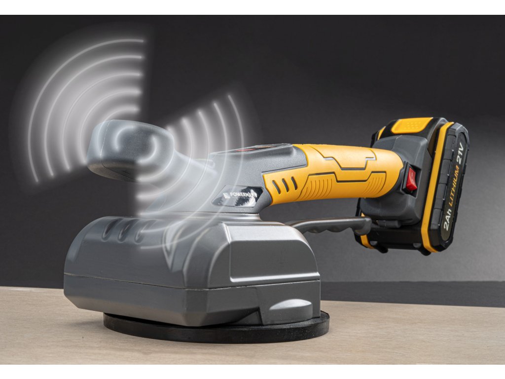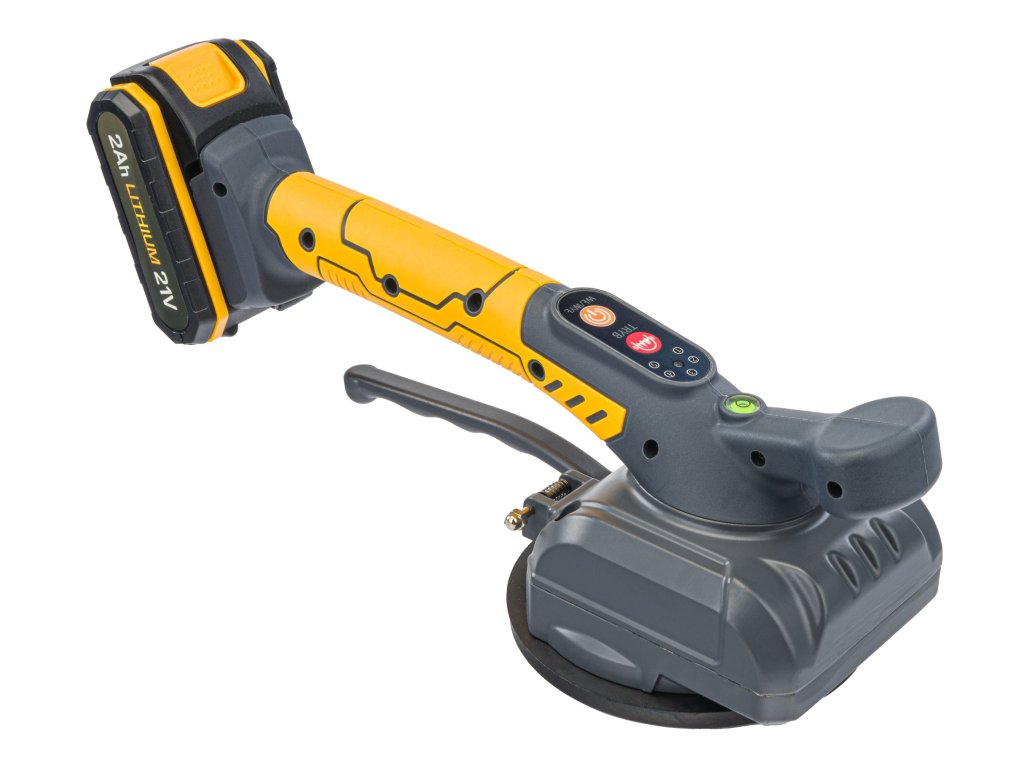 Ventuză PM-APWDP-80T, alimentată de un acumulator litiu-ion cu tensiune 21V, este un instrument ideal pentru instalarea plăcilor atât în interior, cât și în exterior. Această unealtă modernă înlocuiește tehnicile manuale tradiționale și ajută la evitarea problemelor cauzate de distribuția inexactă a adezivului sub plăci și plăci mari. Forma specială și mânerul dublu asigură un echilibru optim al sarcinii în timpul ridicării și plasării plăcilor, facilitând manipularea. Inserțiile moi, concepute ergonomic pe mâner, oferă confort și asigură o prindere sigură. Este compactă, ușoară și permite reglarea ușoară a plăcilor (pot ridica până la 80 kg). Vibrațiile ajută la eliminarea bulelor de aer care ar putea cauza fisuri între adeziv și placă. Intensitatea vibrațiilor este reglată prin presiunea pe comutator.